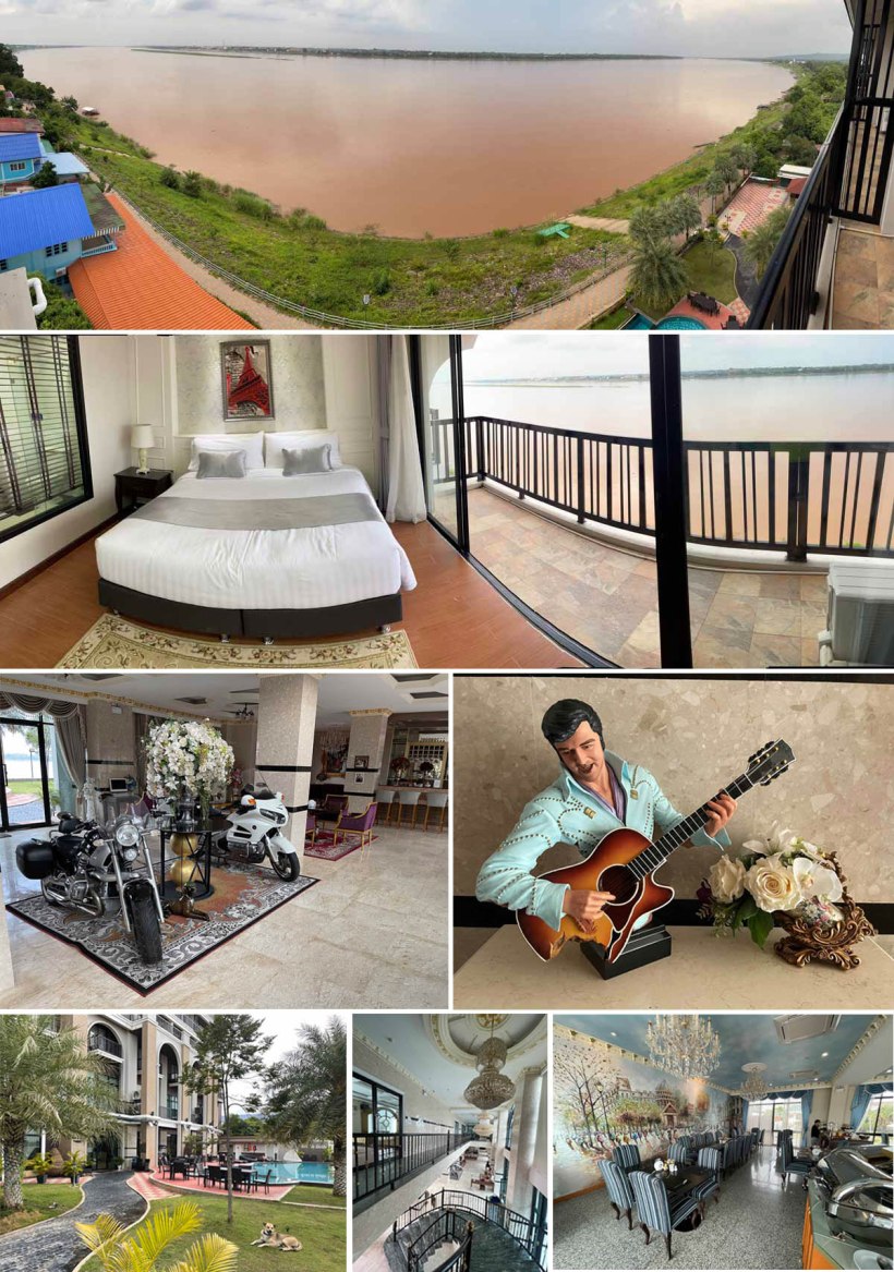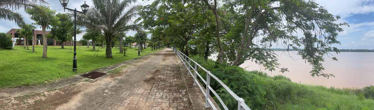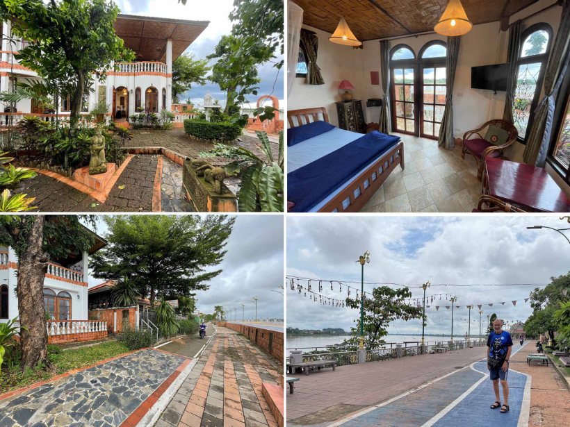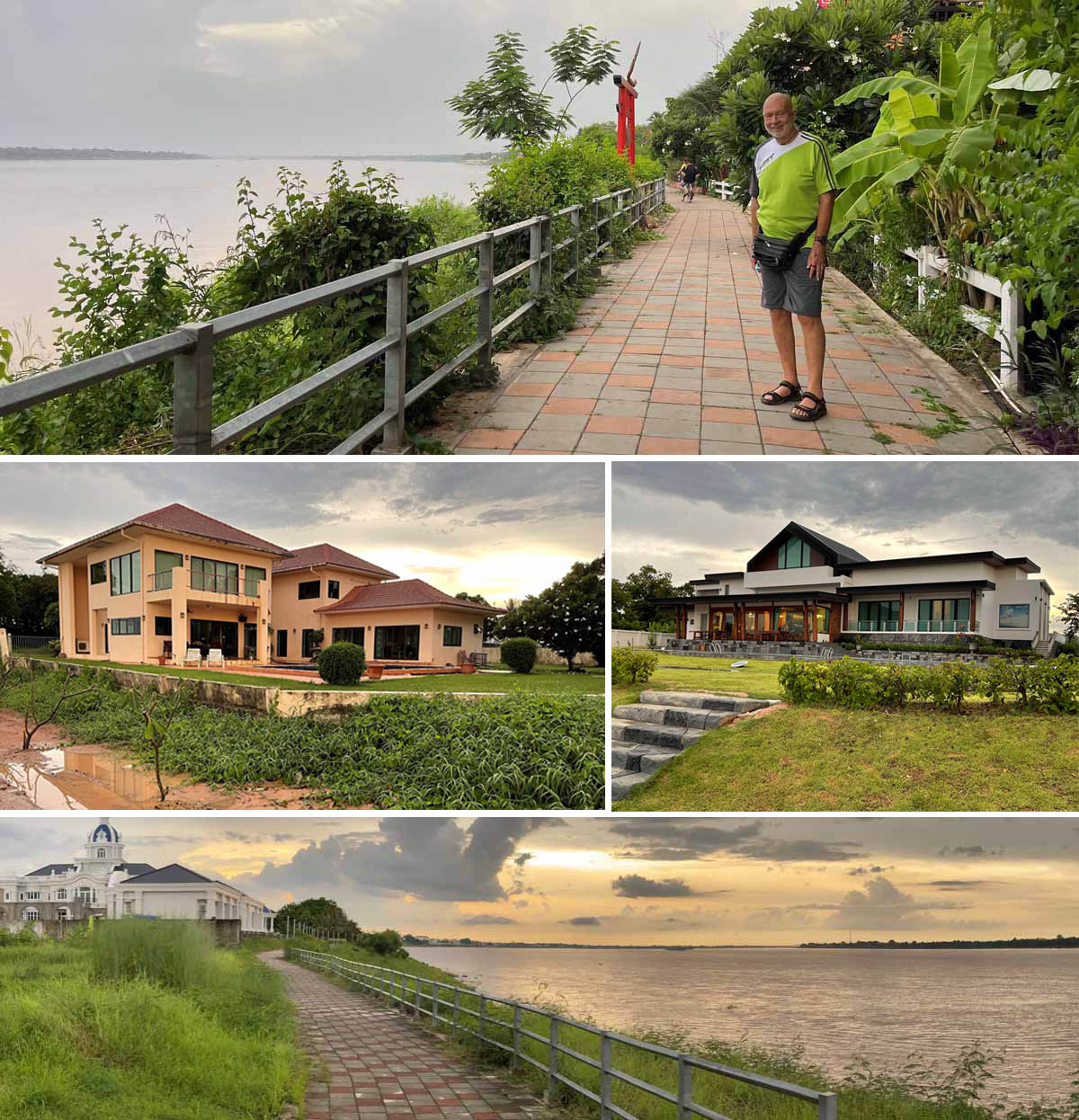 There are a number of hotels on the riverside promenade which affords far ranging views along the Mekong.