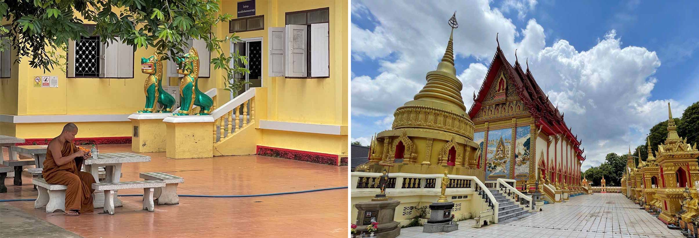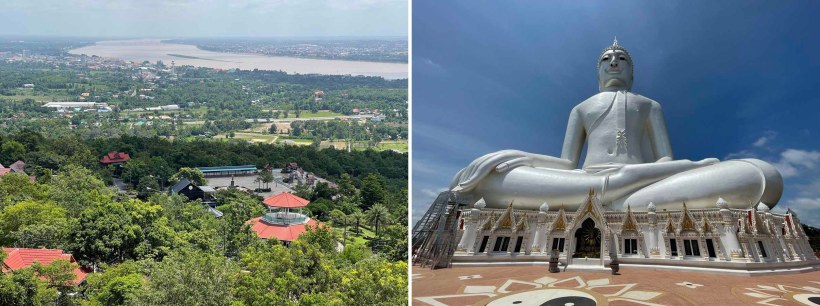 The giant Buddha at Phu Manorom offers expansive views over Mukdahan and across the Mekong into Laos.