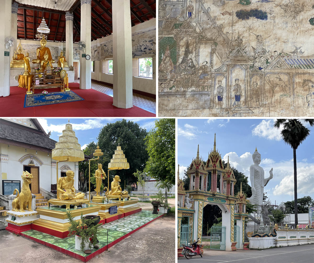 As far as decoration and colour are concerned, for me this was one of the most impressive temples we visited during our two weeks following the Mekong. The wall murals depicting scenes from the life of Buddha were magnificent and there was a never ending collection of Tep (Angels) around the temple exterior.