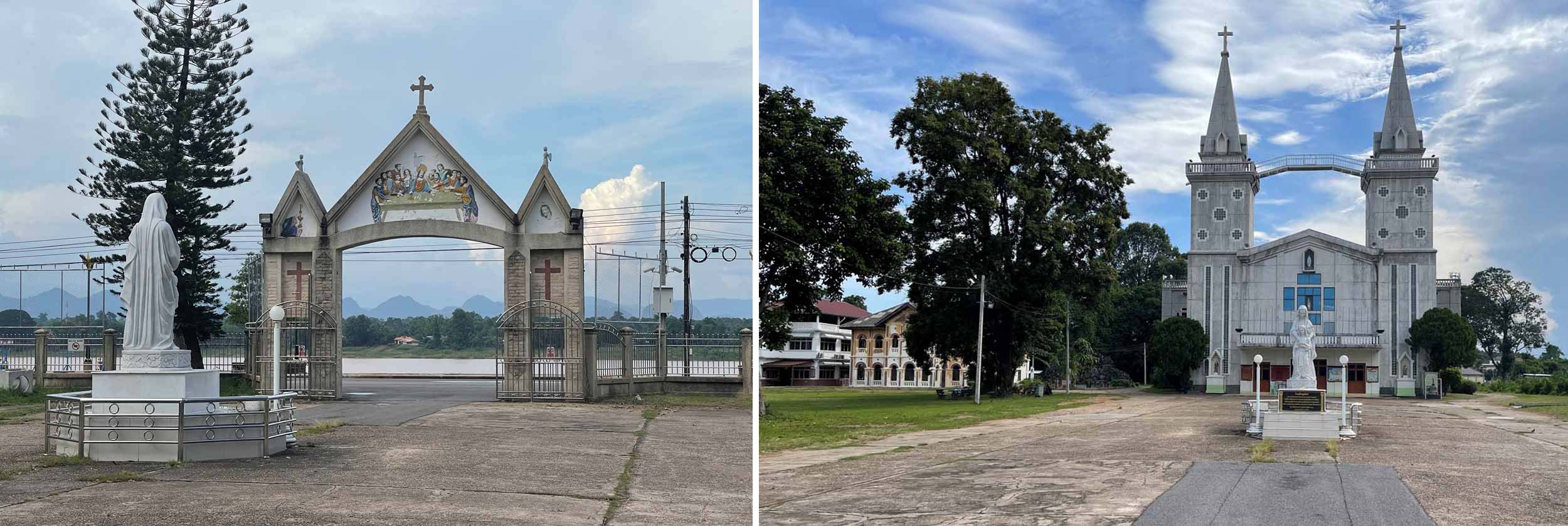 St. Anna’s church located on the banks of the Mekong at Nakhon Phanom reflects the historic influence of Catholic immigrants from Vietnam only 100 miles away. Note the walkway between the two towers.
