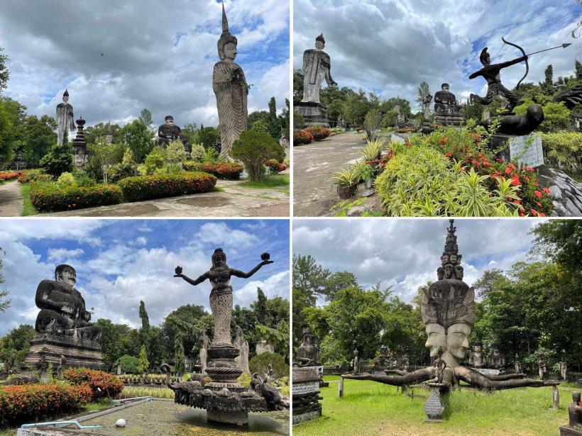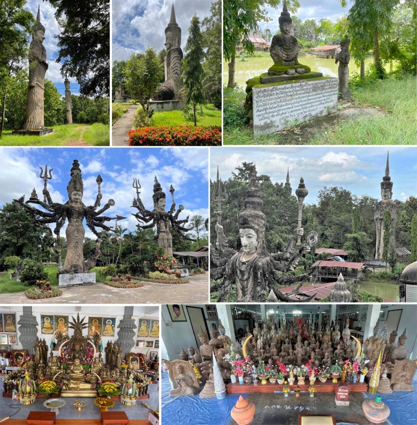 This sculpture park has attracted a range of definitions including ‘fantastic’, ‘weird’, ‘enigmatic’, ‘bizarre’ and ‘quirky’ but certainly offers an impressive array of over 100 giant sculptures with some over 20 metres in height and depicting a range of Animist, Hindu and Buddhist imagery. The park was designed and built by Luang Pu, a Laotian national who has been described as part Yogi, part Priest and part Shaman. Luang Pu originally built a park across the Mekong in his native Laos but, after the 1975 Communist takeover of Laos, fled across the river to replicate and expand his efforts in Thailand. The multi floored main shrine building is full of a never ending collection of Buddhas together with photos of Luang Pu and his embalmed corpse ringed by flashing lights!