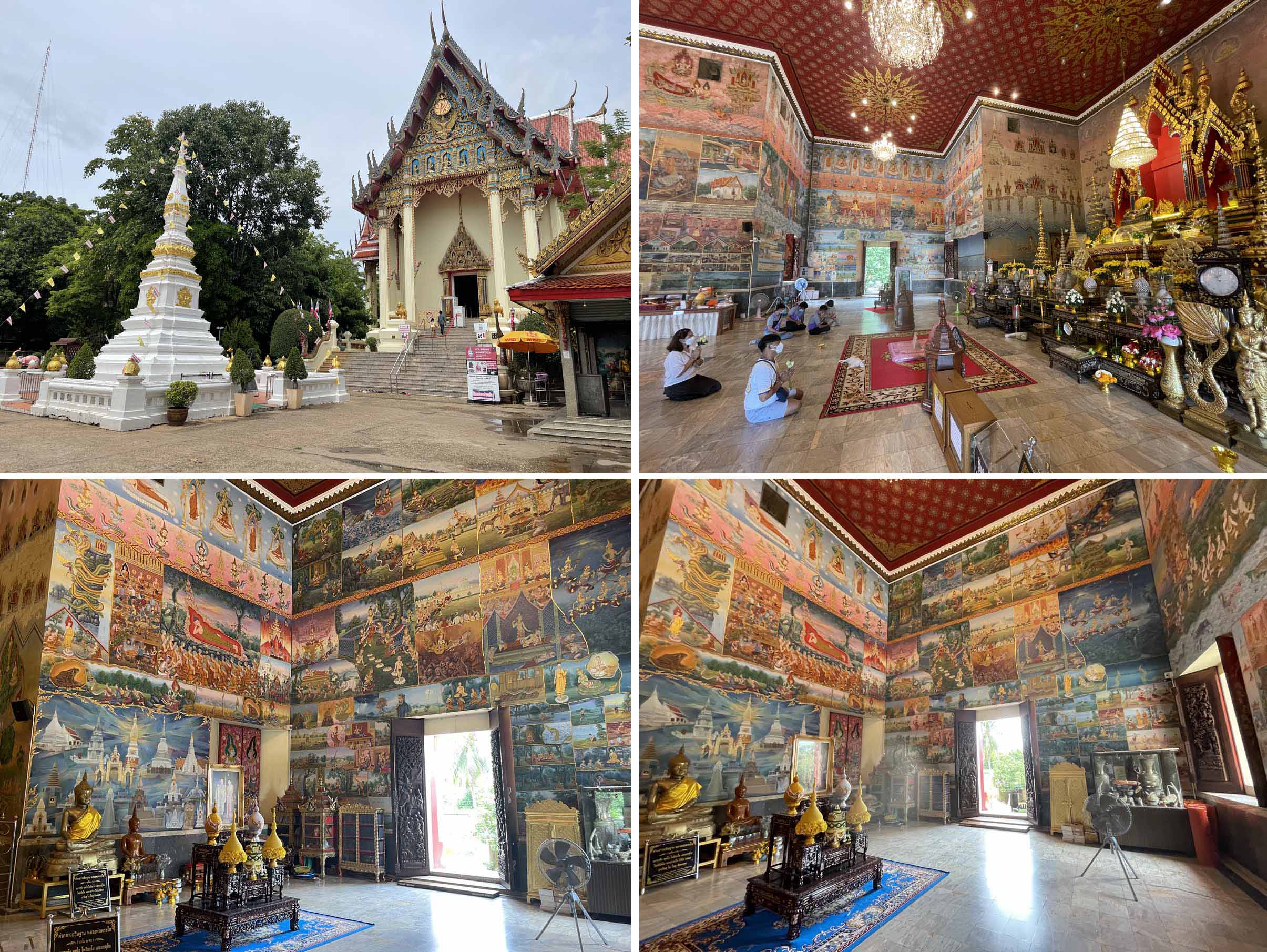 Wat Pho Chai is Non Khai’s largest and most important temple and the Bronze Buddha image has a solid gold head. As did Holy Relics in European cathedrals, the statue attracts many visitors because of the miracles attributed to it! However it is the outstanding wall murals that capture the attention of most non-Thai visitors.