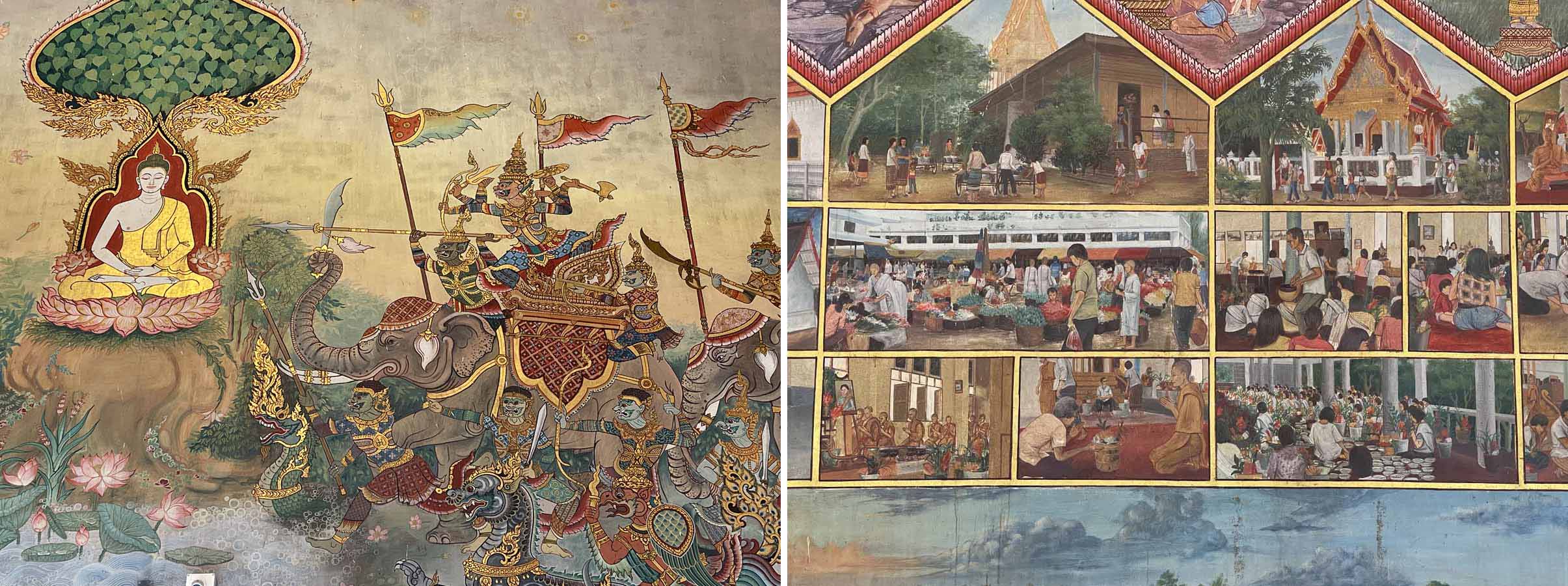Most Thais are very familiar with the scenes depicted in the murals and can recite the full stories from the tales depicted.