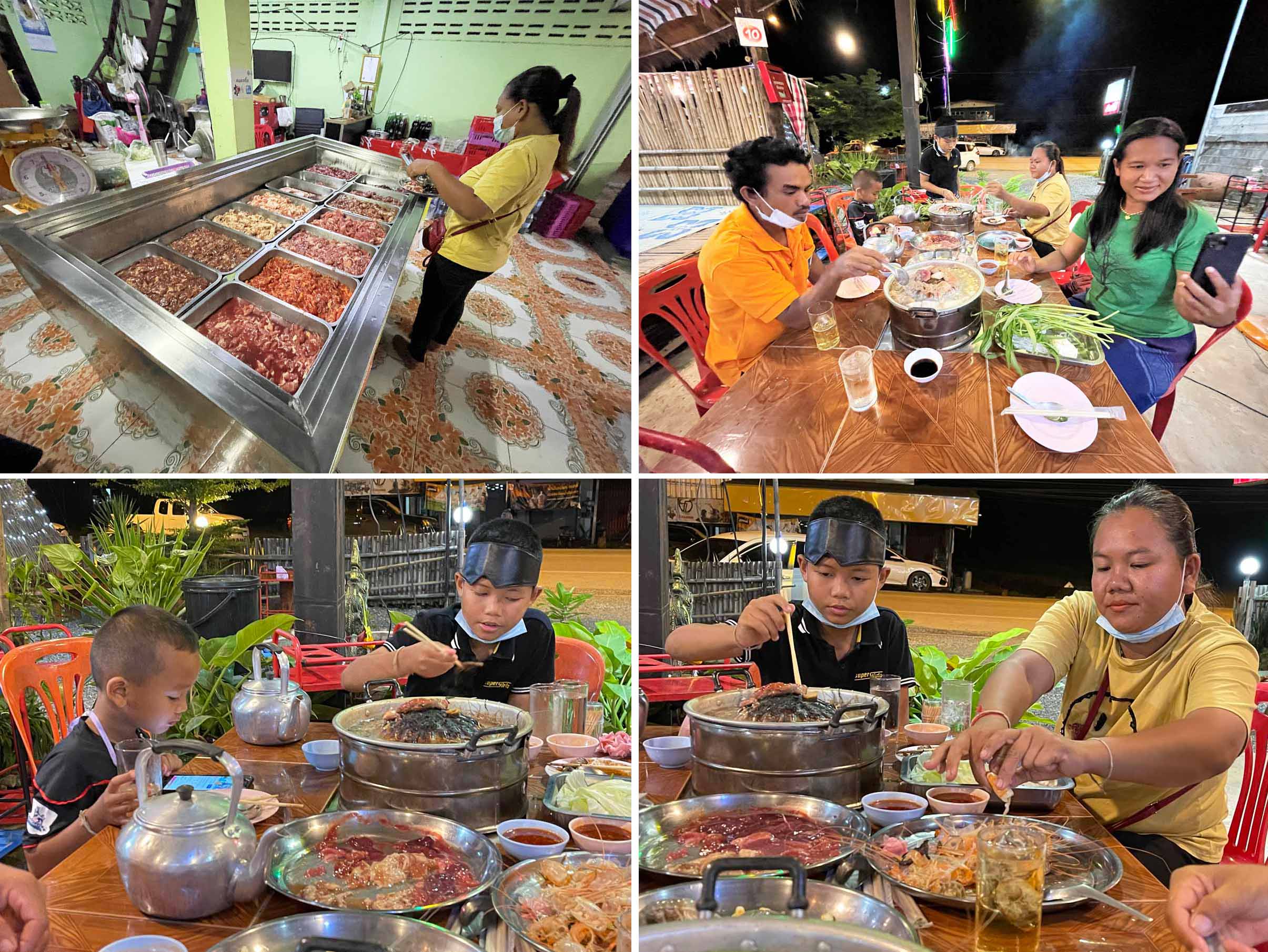 Deeow and his family joined us for a typical Isaan buffet at Pak Chom where the food is self cooked in steaming water at the table.