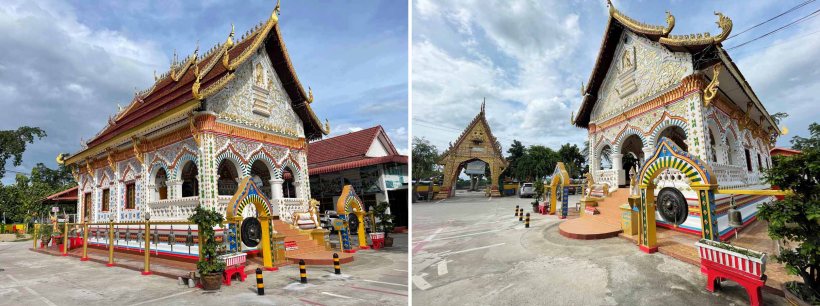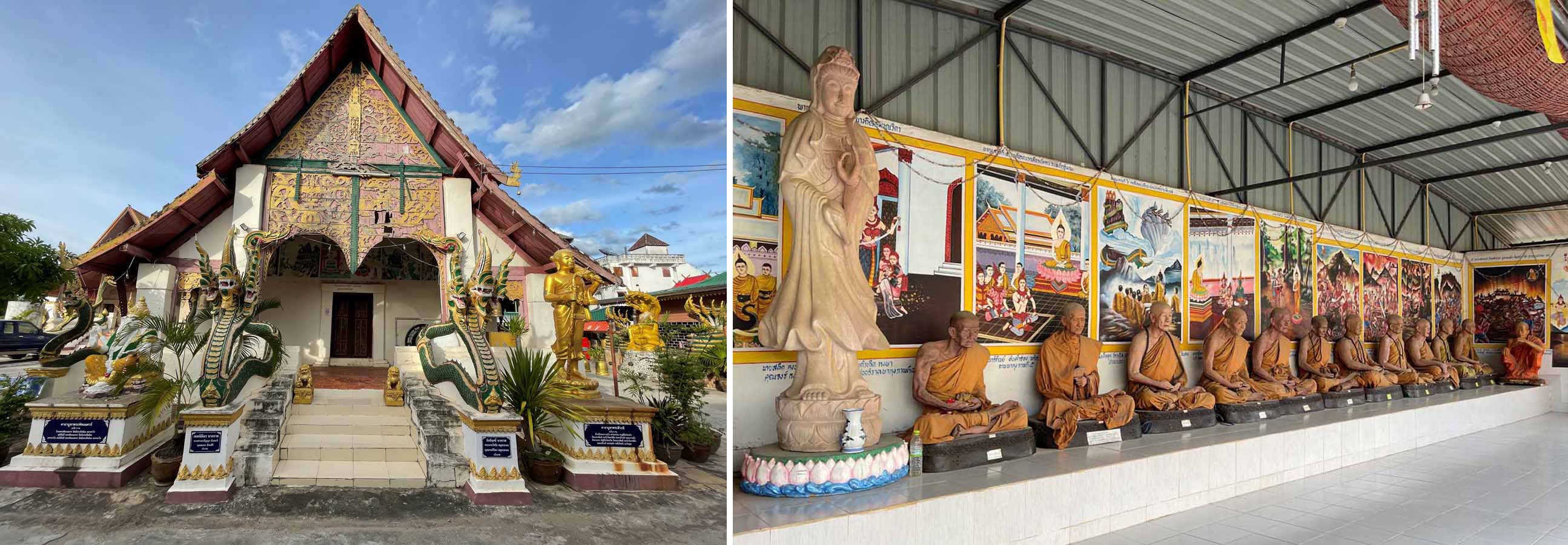 The sweeping low roof of Wat Sri Khun Mueng and Yakshas (demons) guarding the entrance are distinctly Thai. An interesting mural combines historic and contemporary Thai life.
