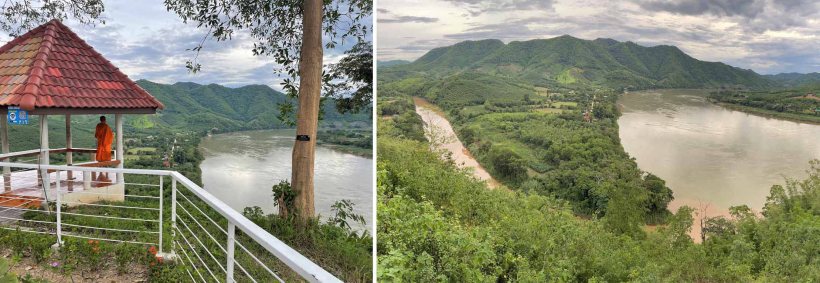 The viewpoint at Phra Yai overlooks the confluence of the Huang River with the Mekong and from this point onwards the Mekong is wholly flowing out of Laos and no longer forms the border between Thailand and Laos. A giant 19-metre Buddha and a glass skywalk adorn the high hilltop some 20km west of Chiang Khan.