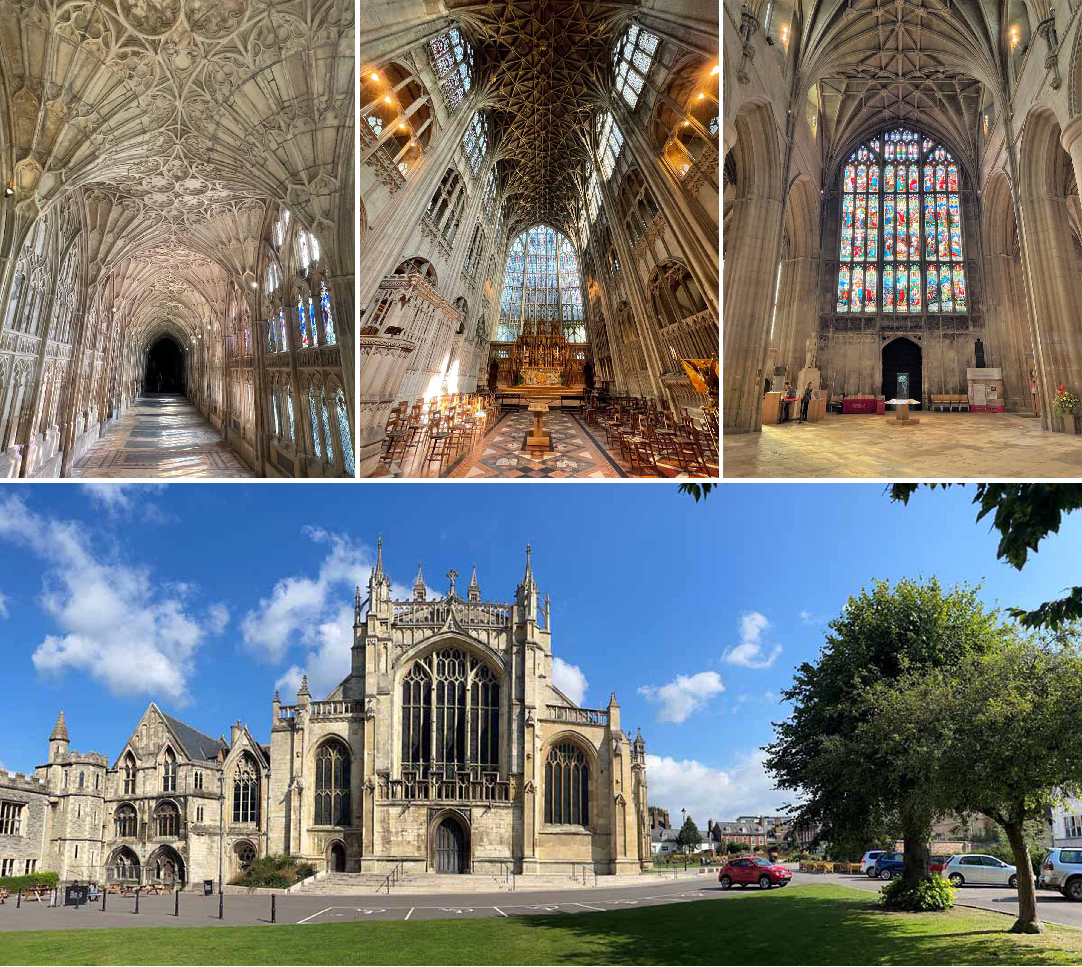 The Cathedral at Gloucester is one of Britain’s finest and contains superb examples of many varied Gothic styles.