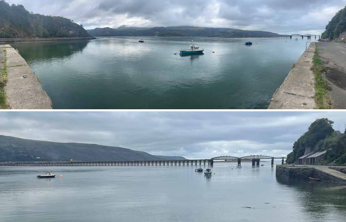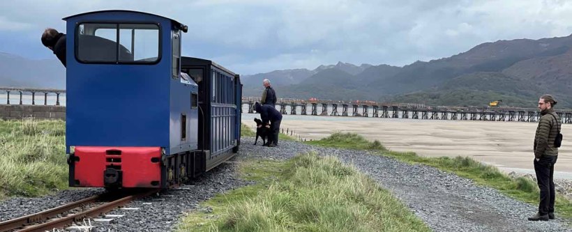 The Fairbourne Railway runs from Fairbourne Village to the mouth of the Mawddach Estuary and connects with a tiny ferry boat to Barmouth.
