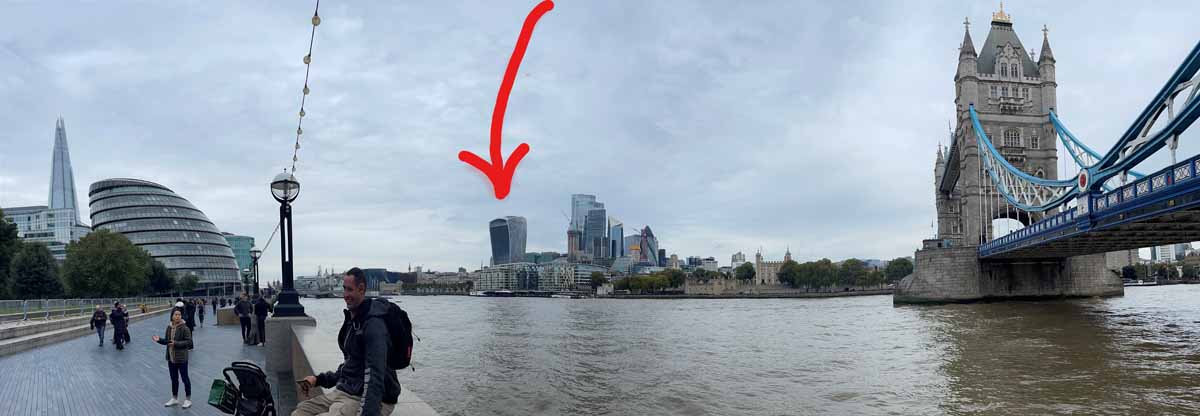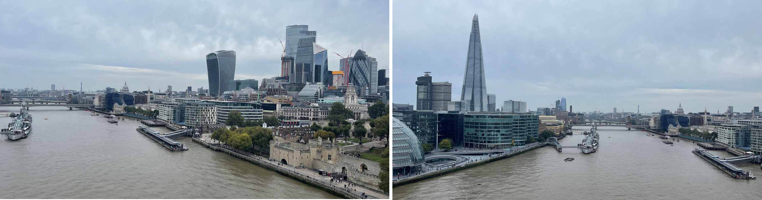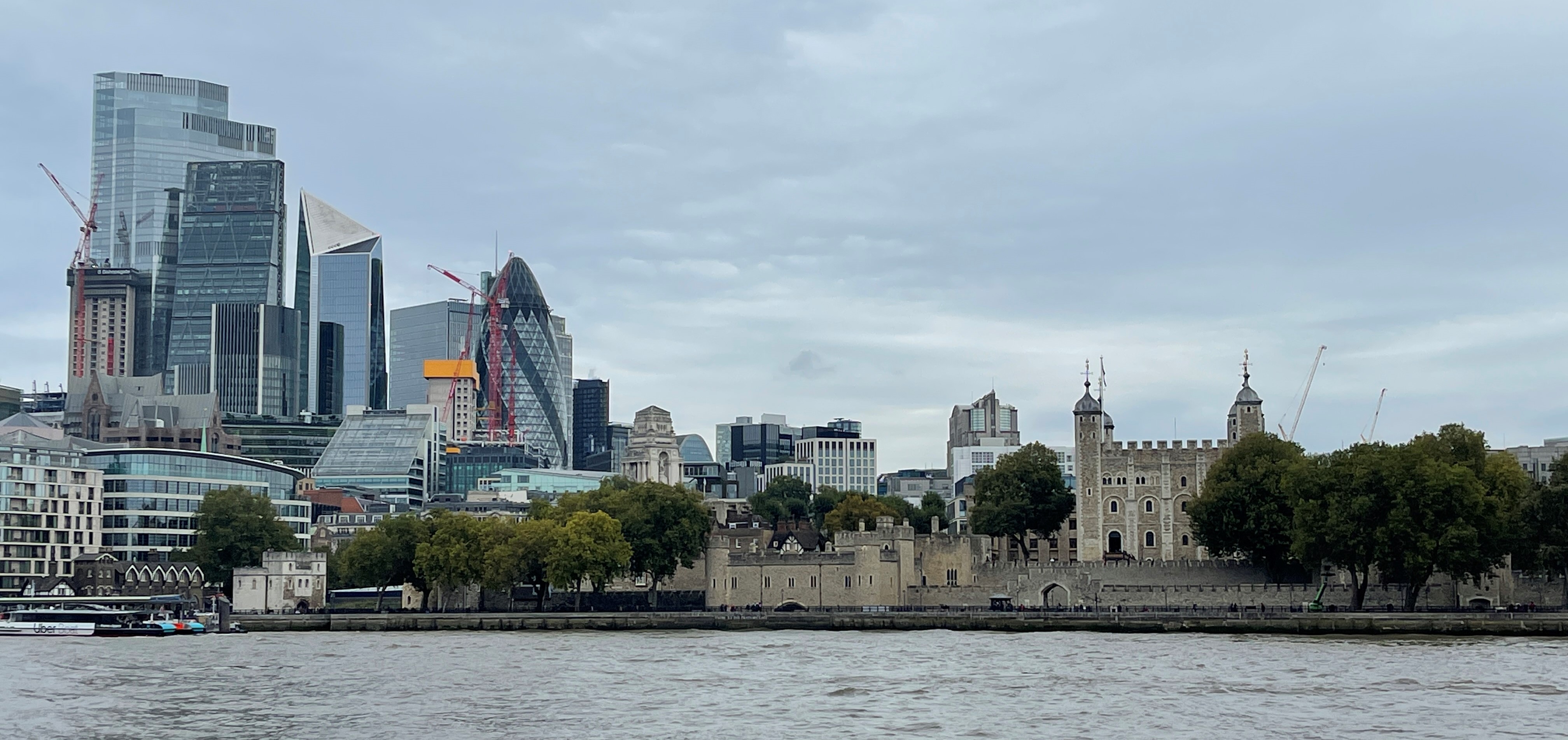Tower of London on the right and a not particularly inspiring selection of not very complementary modern buildings of which the aptly nicknamed ‘The Gherkin’ is the most distinctive.