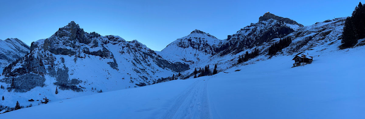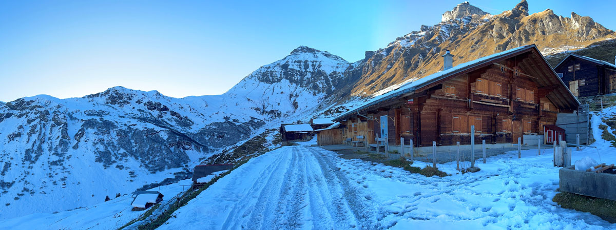 The 50 minute walk to Spielbodenalp is part of the famed Alpine Pass route which traverses Switzerland, crossing 14 Alpine Passes. It passes in and out of woods and passes isolated chalets and, as well as providing an alternative access to the Schiltal. It also leads to the popular viewpoint of Bryndli, the magnificent Wasenegg Ridge and the Rotstockhütte, a popular overnight stay for hikers on the Alpine Pass Route before they cross the famous Sefinenfurgge Pass.