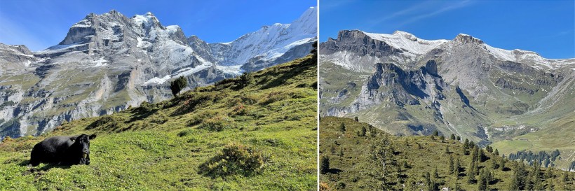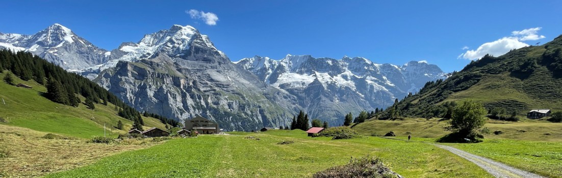 The walk to the high altitude dairy at Schiltalp and the Schilttal Valley, beneath the Schilthorn, forms part of the popular North Face trail and yields one glorious panorama after another.