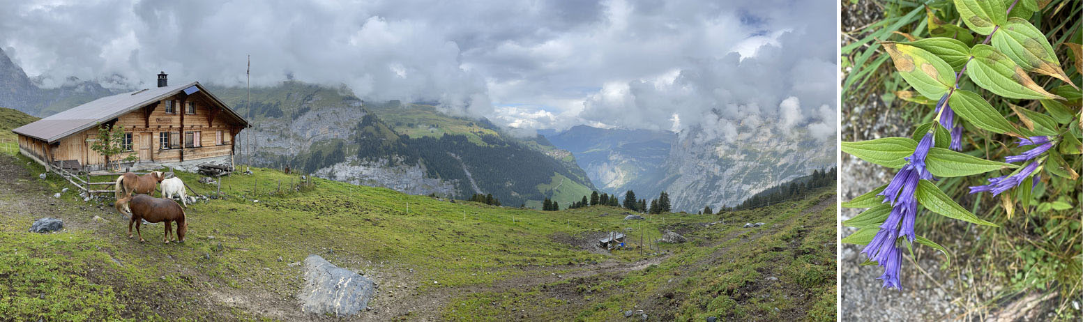 The Blumental is a secluded valley and a steep 20-minute walk above Mürren, or accessible by funicular to the viewpoint of Allmendubel and then a gentle walk down into the valley. The Blumental contains a number of isolated barns and chalets, many converted to summer homes, as well as two Mountain Inns/Restaurants.