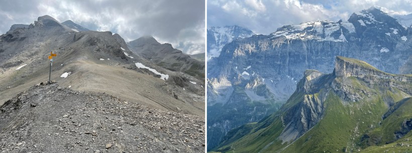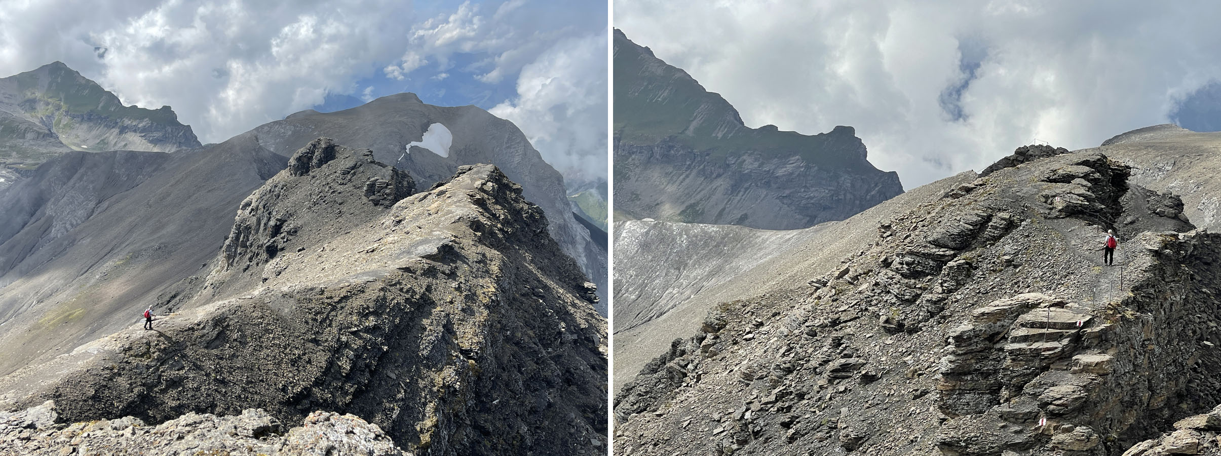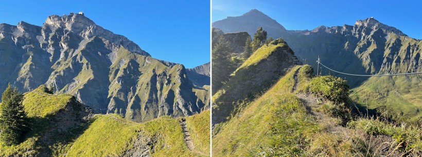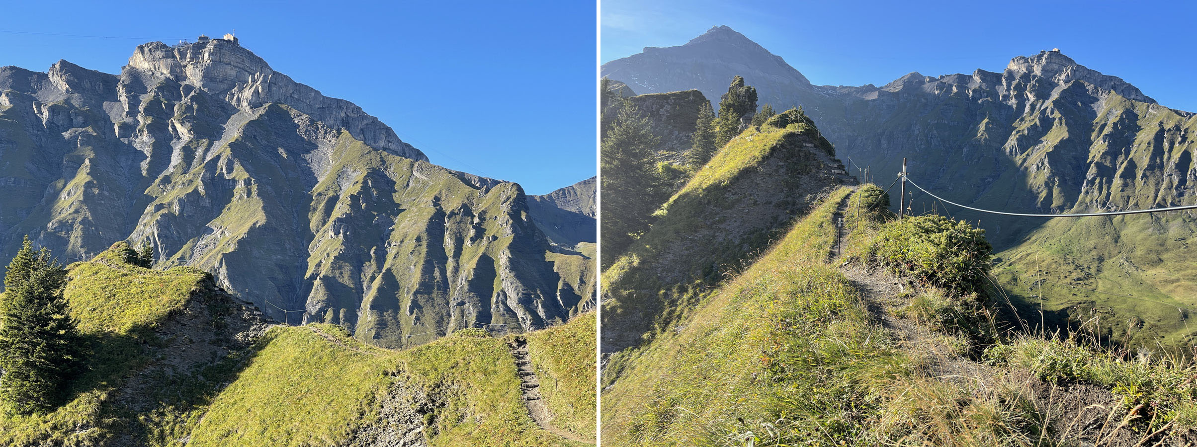 Bryndli is one of the two rock outcrops at the end of the Wasenegg Ridge which look like a pair of dog’s ears when viewed from Mürren! It provides a magnificent viewpoint, and a visitors log book is kept in a waterproofed metal box at the foot of the cross on the summit. The path along the ridge is wide and gentle, save for a few steps where one has to be careful with foot placements and where a cable is placed to provide support and assistance.