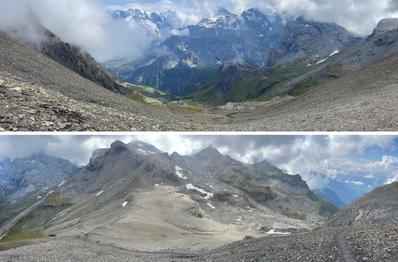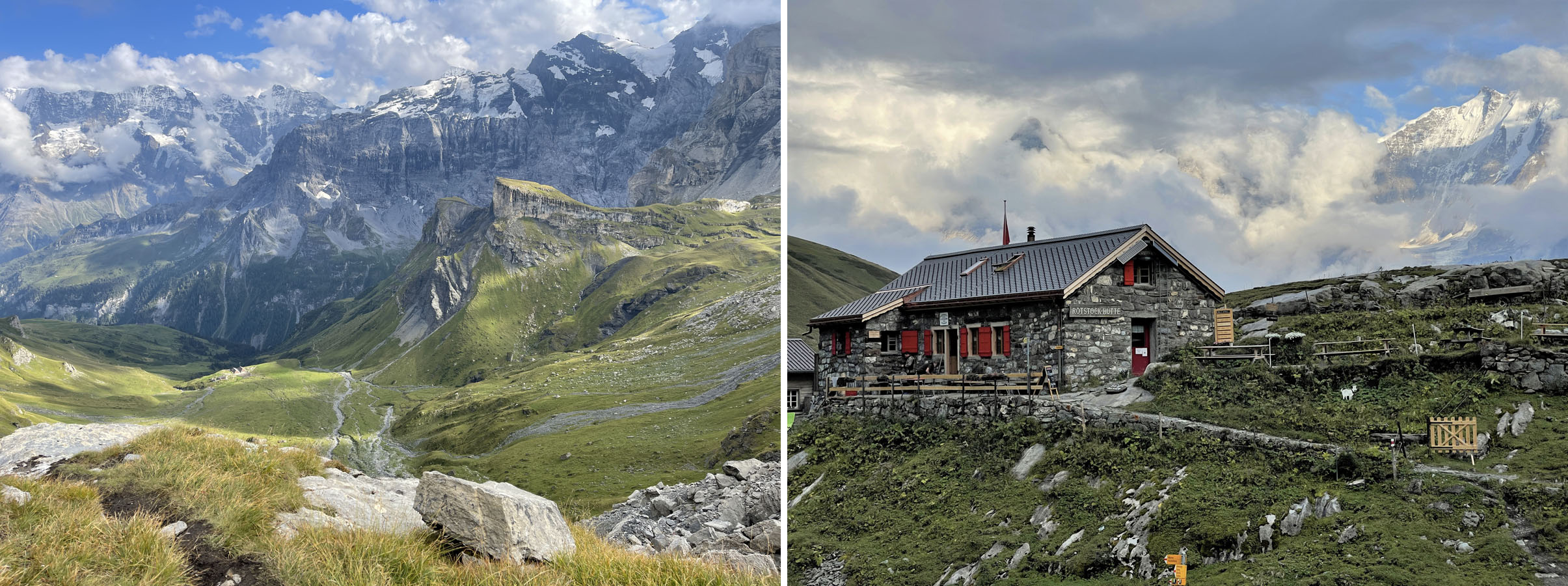 Looking towards the Jungfrau and Rottal glacier (left) and the Rotstockhütte (right) from above Busenalp.