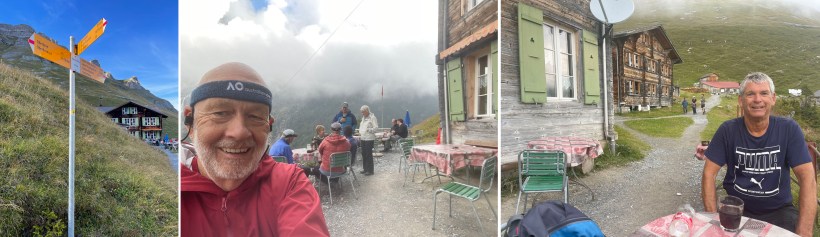 Whilst I would like to report that most visitors to Mürren are attracted by the magnificent scenery and the almost unrivalled range of walking options, the reality is that most of the visitors are come as ‘day trippers’ as an interim stop on the cable car ride to the summit of the Schilthorn. The mountain, close to Mürren, featured prominently in the James Bond film ‘On Her Majesty’s Secret Service’ and has successfully dined out and used the connection for marketing purposes for over 50 years. The Schilthorn is a conical and isolated peak offering extensive views in all directions and there are three different hiking routes that lead to the 2969 metre (10,000ft) summit. In September 2021, together with my friend Brian the Plumber (or ‘Moaner’ as he is more affectionately known – I wonder why?), we took the cable car to the summit and returned to Mürren via the longer and more exposed route descending to the Rote Hard Pass and then passing by the Rotstockhütte.
