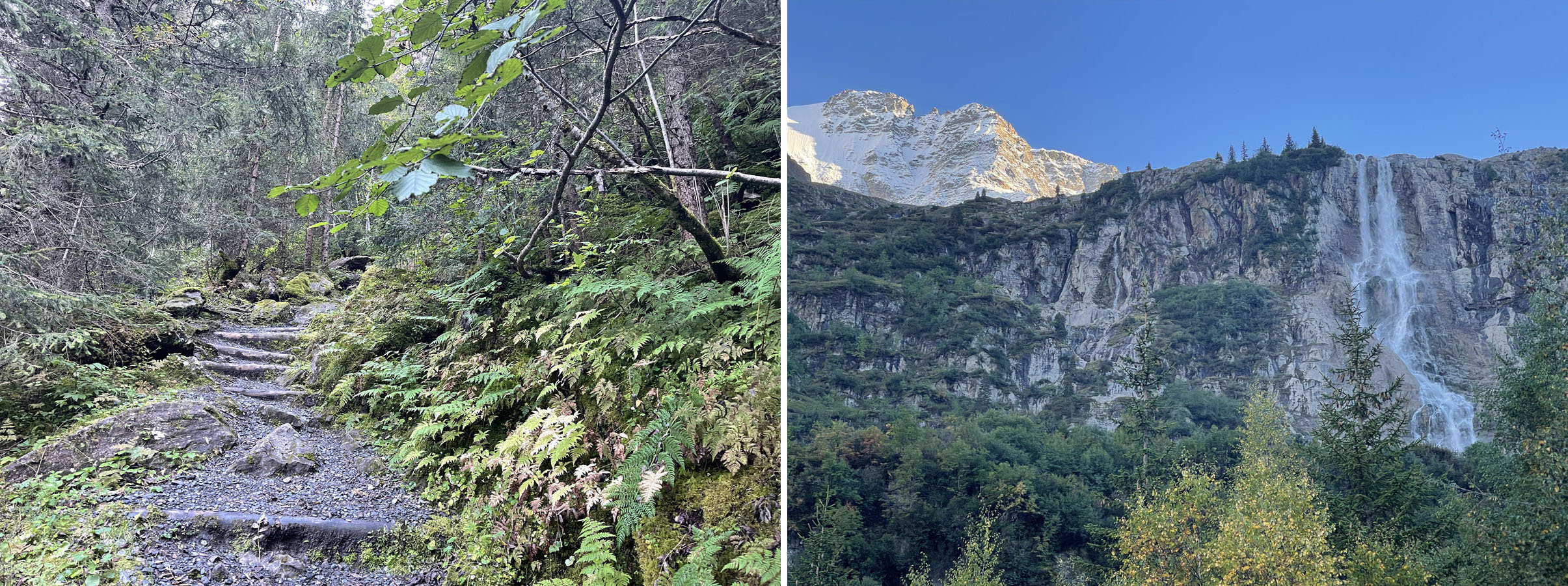 The Schmadri Falls are a distinctive landmark within the Upper Lauterbrunnen Valley and they accompany hikers on the descent from Tanzbödeli to Obersteinberg.