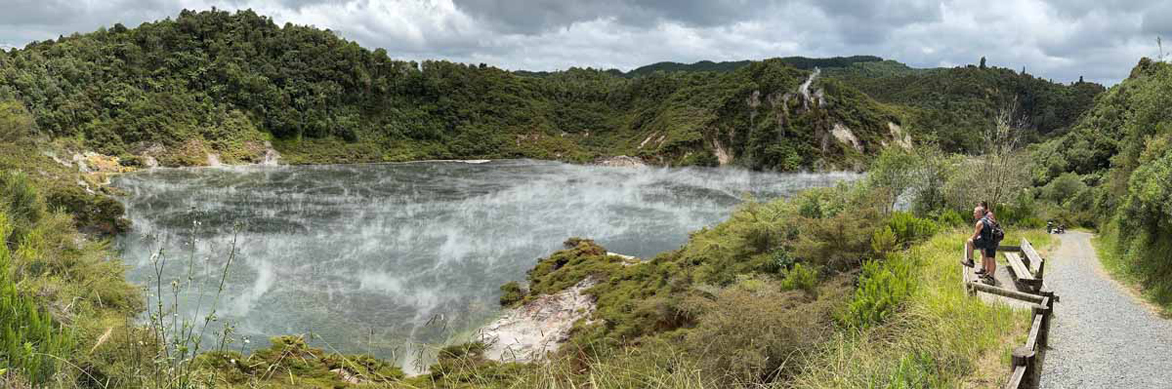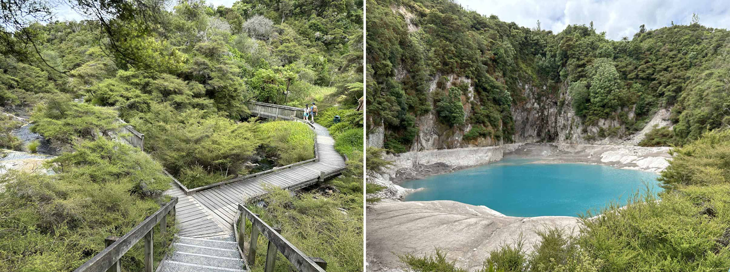 Entering the Waimangu Volcanic Valley, one of several Geothermal areas, is well worth a visit.