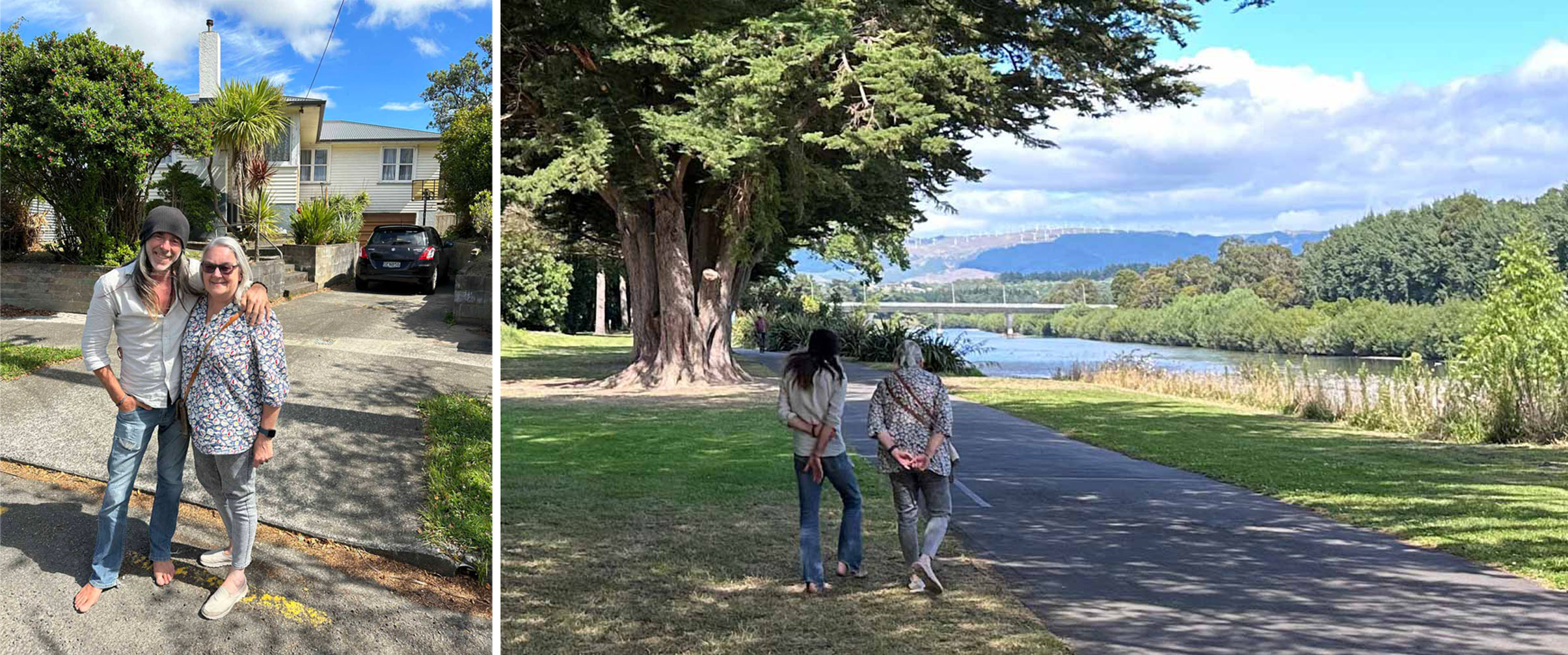 Sharron and her son Stephen in Palmerston North and outside the house where she worked as a Nanny 50 years previously!