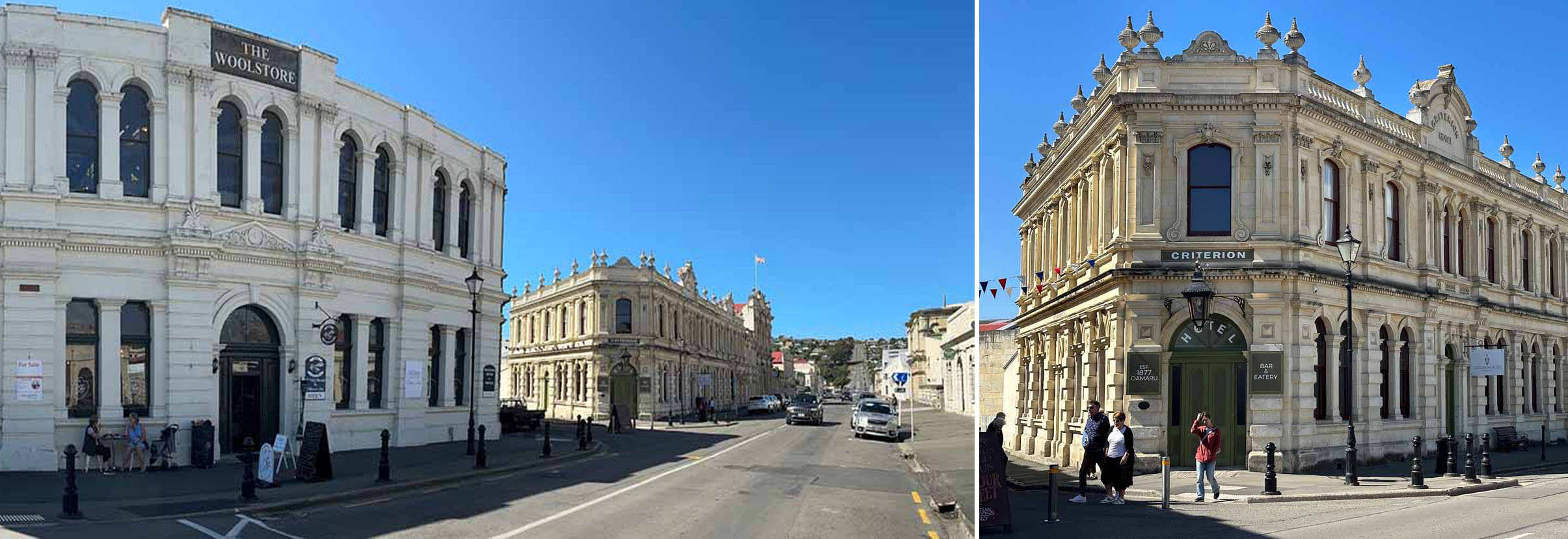 The town as an absolute treasure trove of magnificent nineteenth century Whitestone architecture and the historic area besides the port area has also been restored into an area of Galleries, Craft shops, Coffee shops and restaurants which is arguably the most atmospheric and interesting urban area in New Zealand.