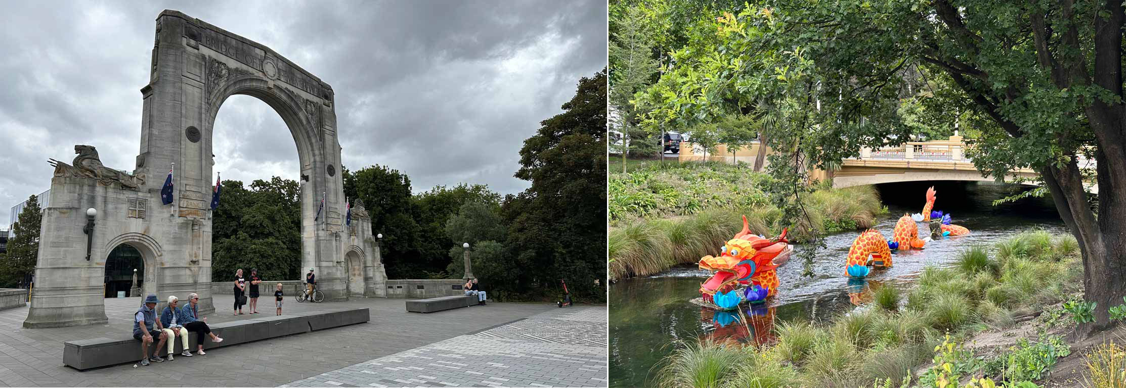 The Bridge of Remembrance War Memorial incorporates a triumphal arch and spans the Avon River.