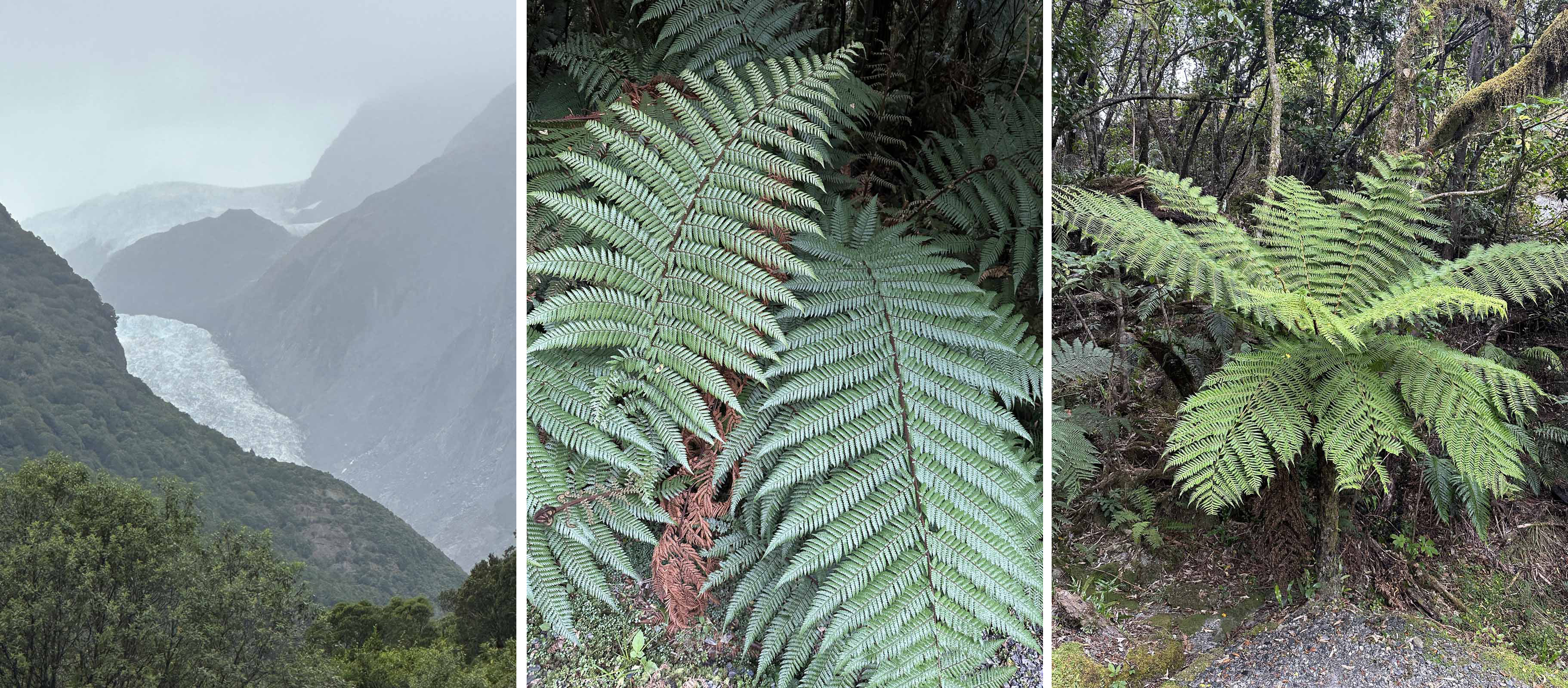 Other than this distant view of the Fox Glacier we saw much more of the luxuriant West Coast vegetation than we did of mountain views!