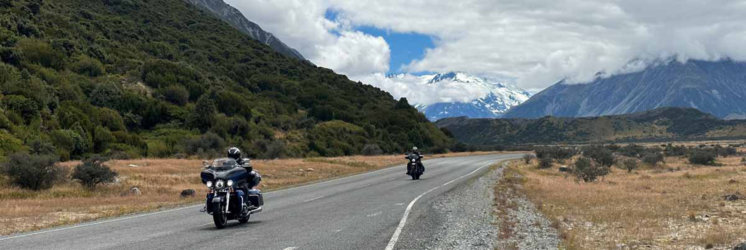 Mountains always seem to attract Bikers! On the Tasman Valley Road.