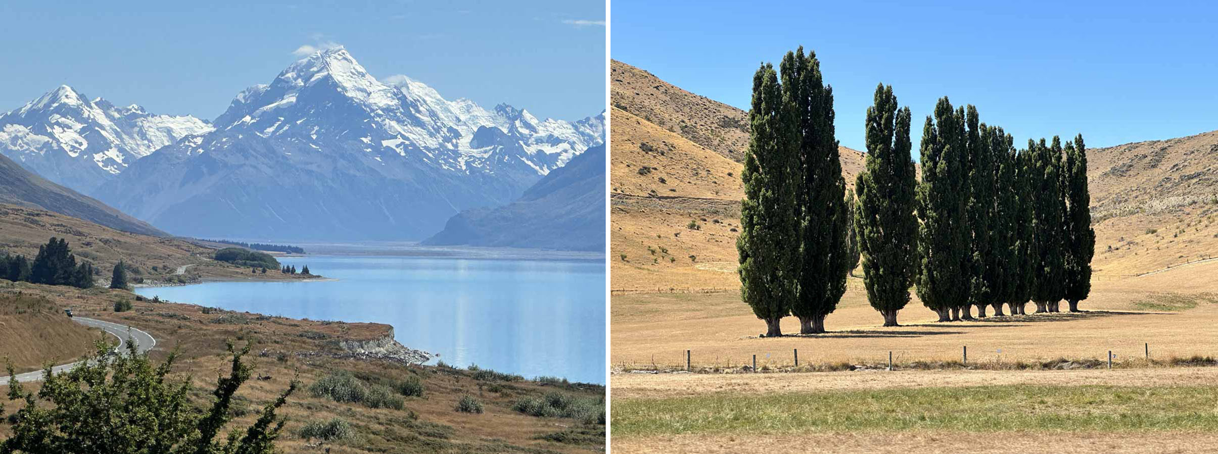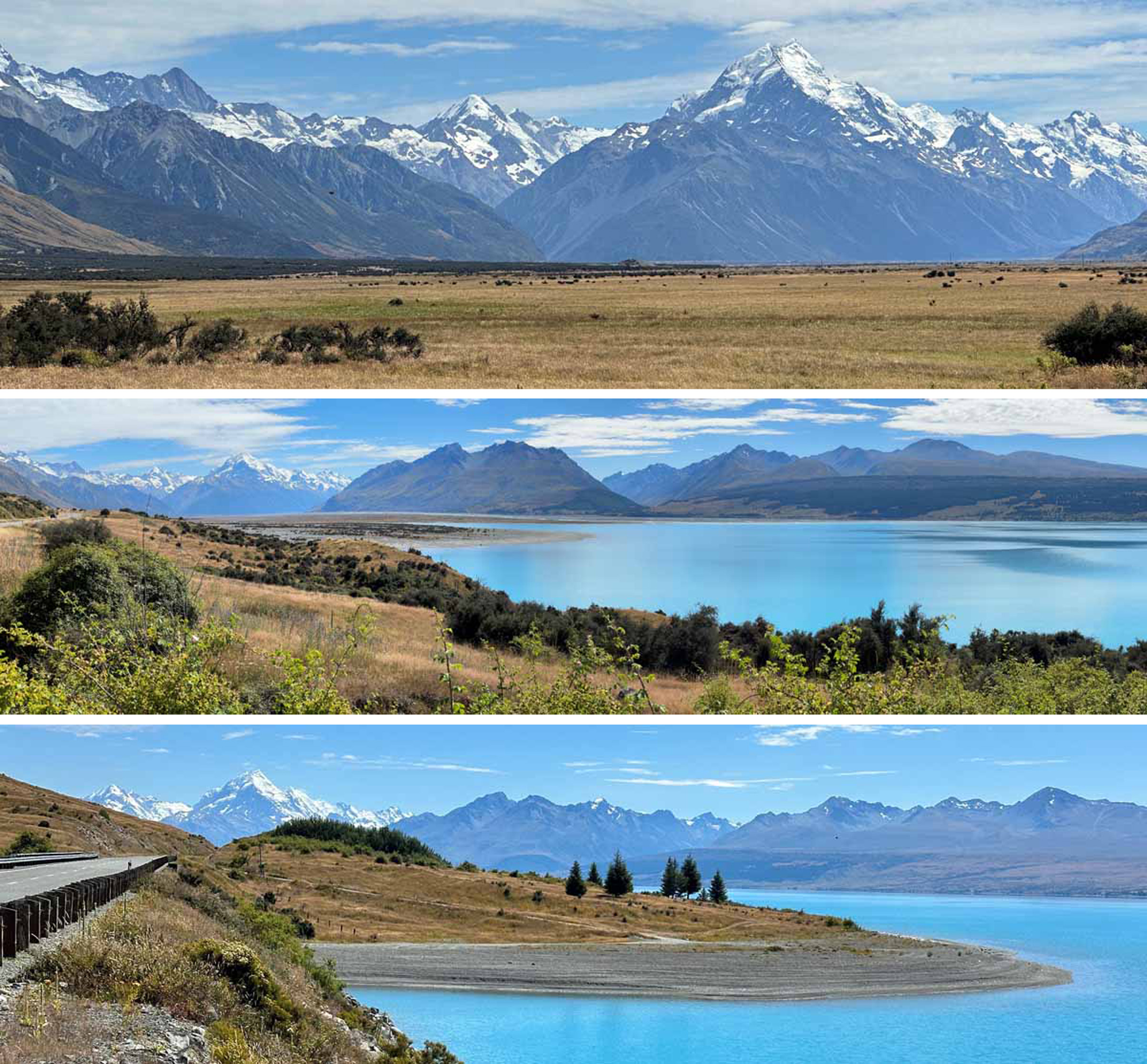 Our journey from Haast where we left the West Coast to Mt Cook will be long remembered because of the mysterious disappearance of our rental car keys as we refuelled our car at a small outback gas station. Despite the efforts of the two of us and three staff, the keys, which had to be present for us to drive into the gas station, were nowhere to be found. The only credible explanation is they had fallen out of a pocket and down the toilet!