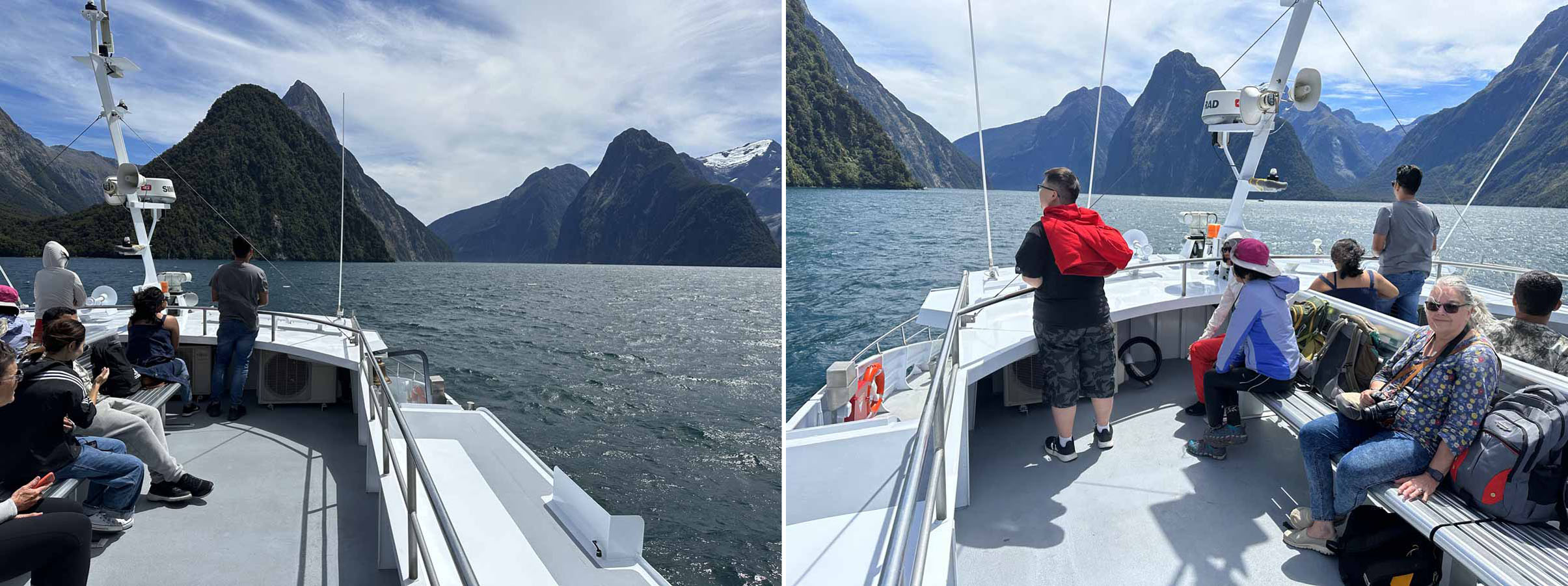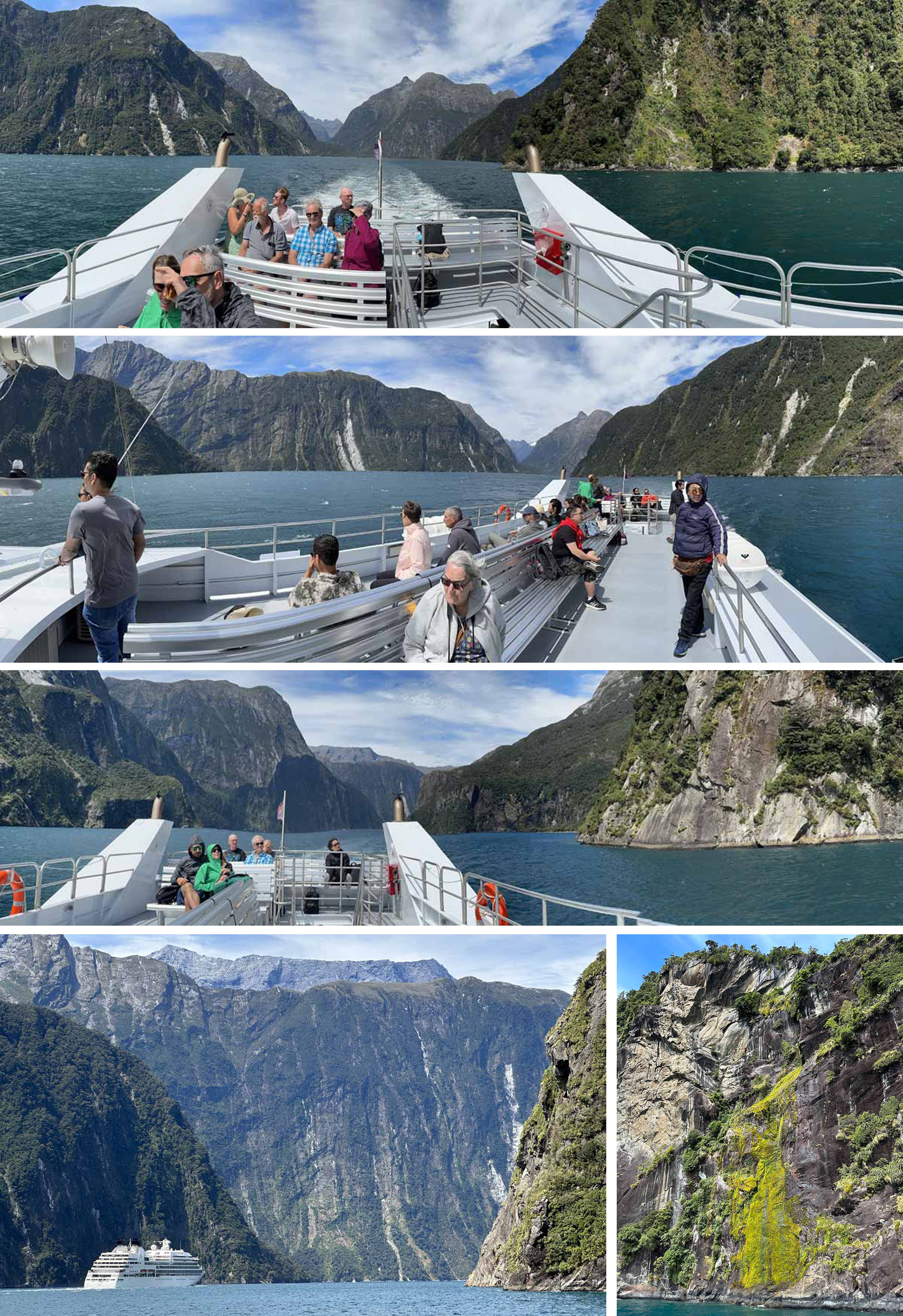 At the end of the fjord boats make a short incursion into the Tasman Sea……………..
