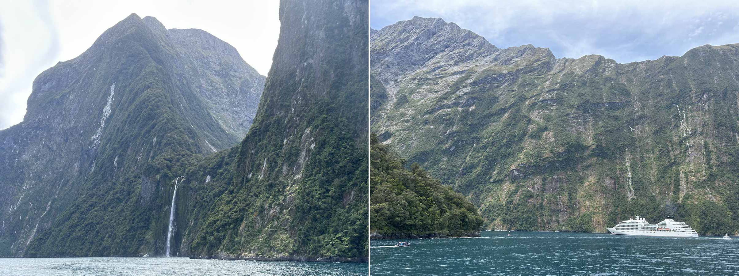 Milford Sound is in fact not a Sound in the Geographical sense (which refers to a drowned River Valley) but a fjord which is formed by glaciers, much narrower and defined by soaring, almost vertical walls.