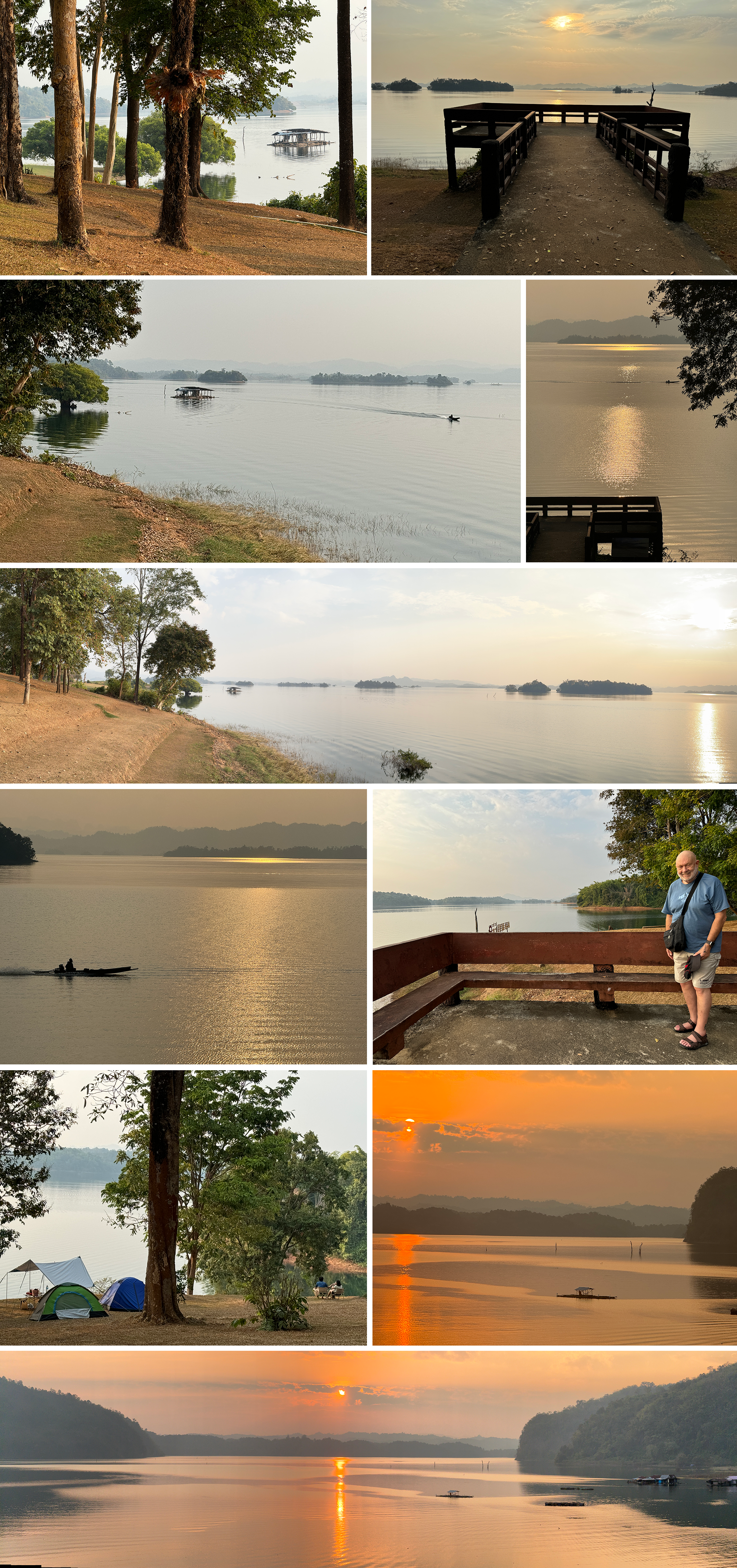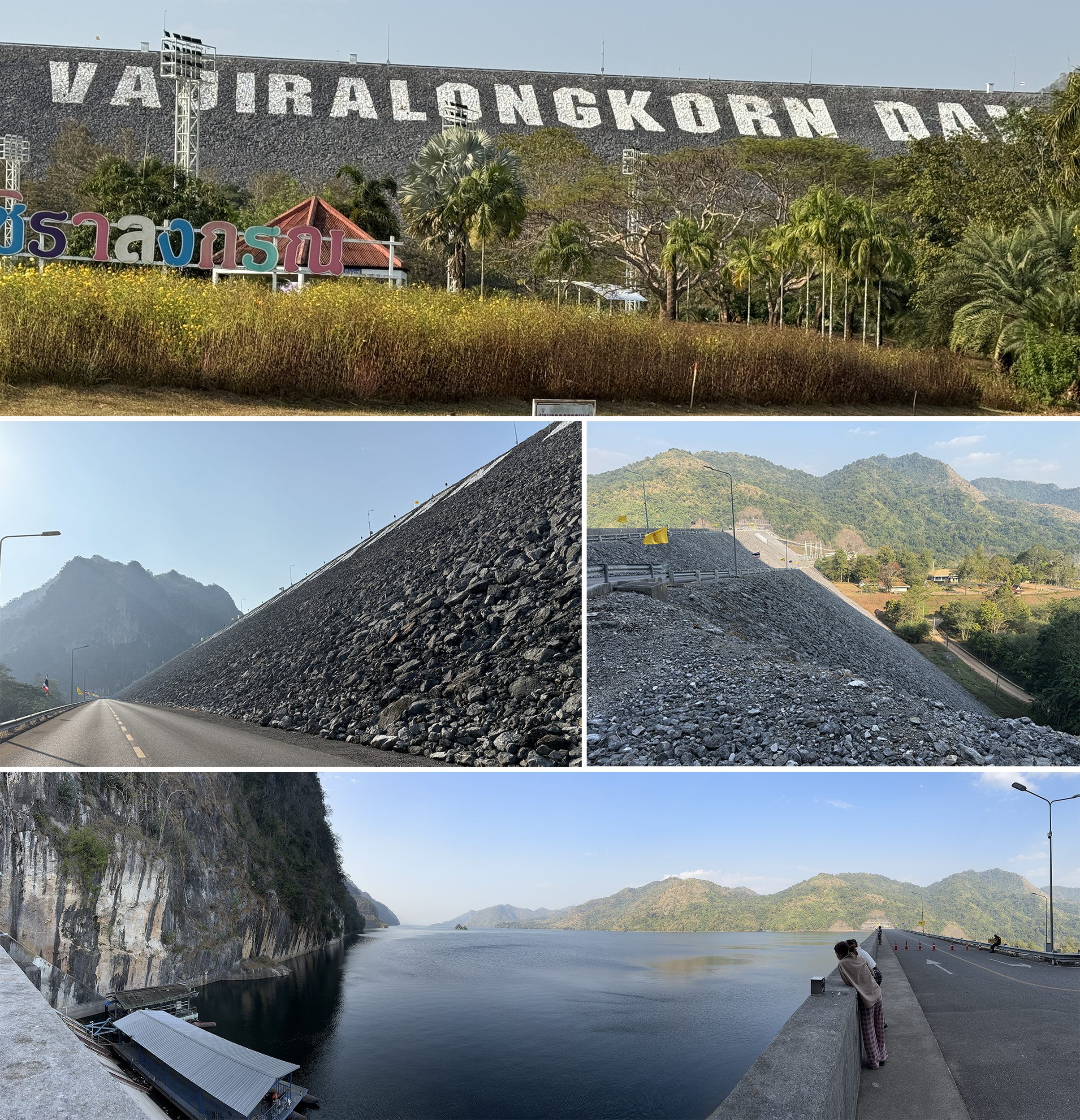 The dam is about 5 miles north of Thong Pha Pum and was built in the 1980s to form Lake Vajiralongkorn which stretches all the way north to Sangkhla Buri. One can drive to the top of the Dam for far ranging views.