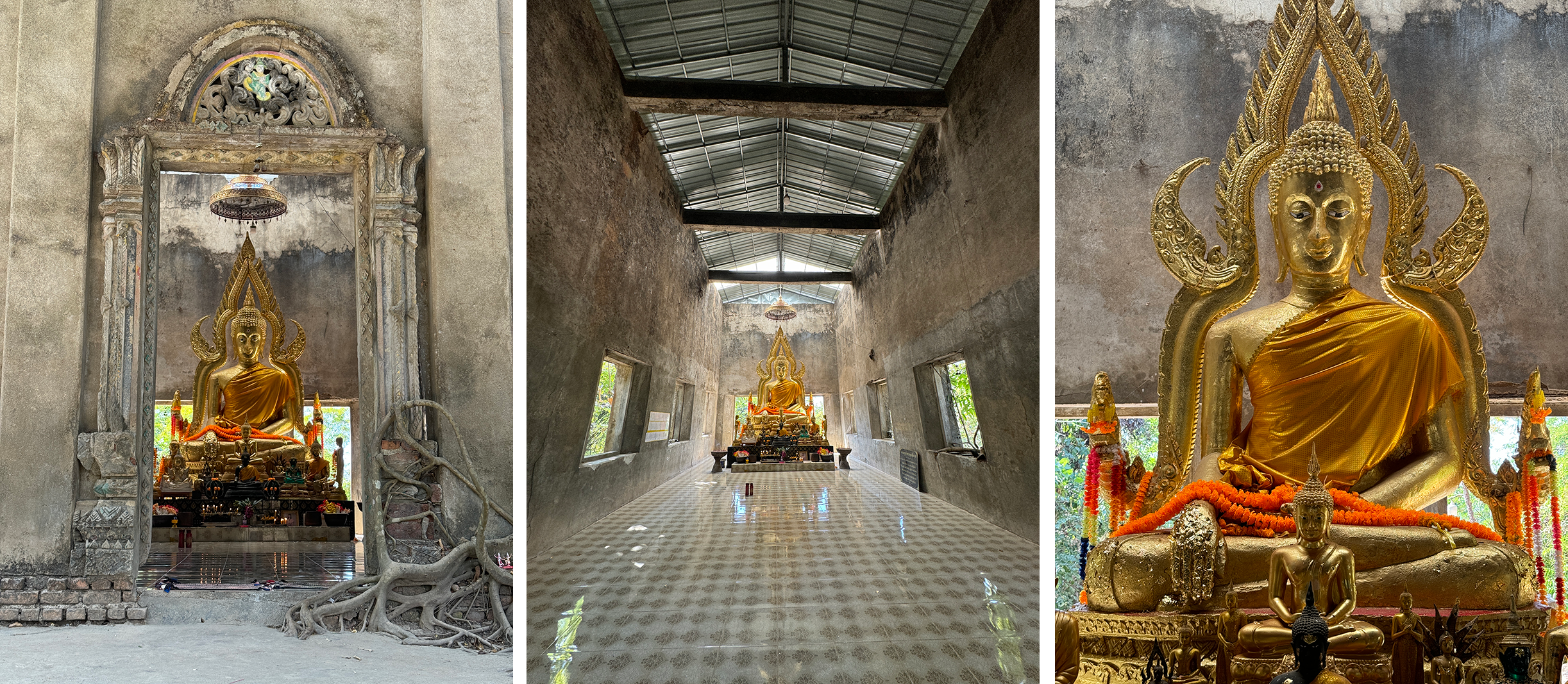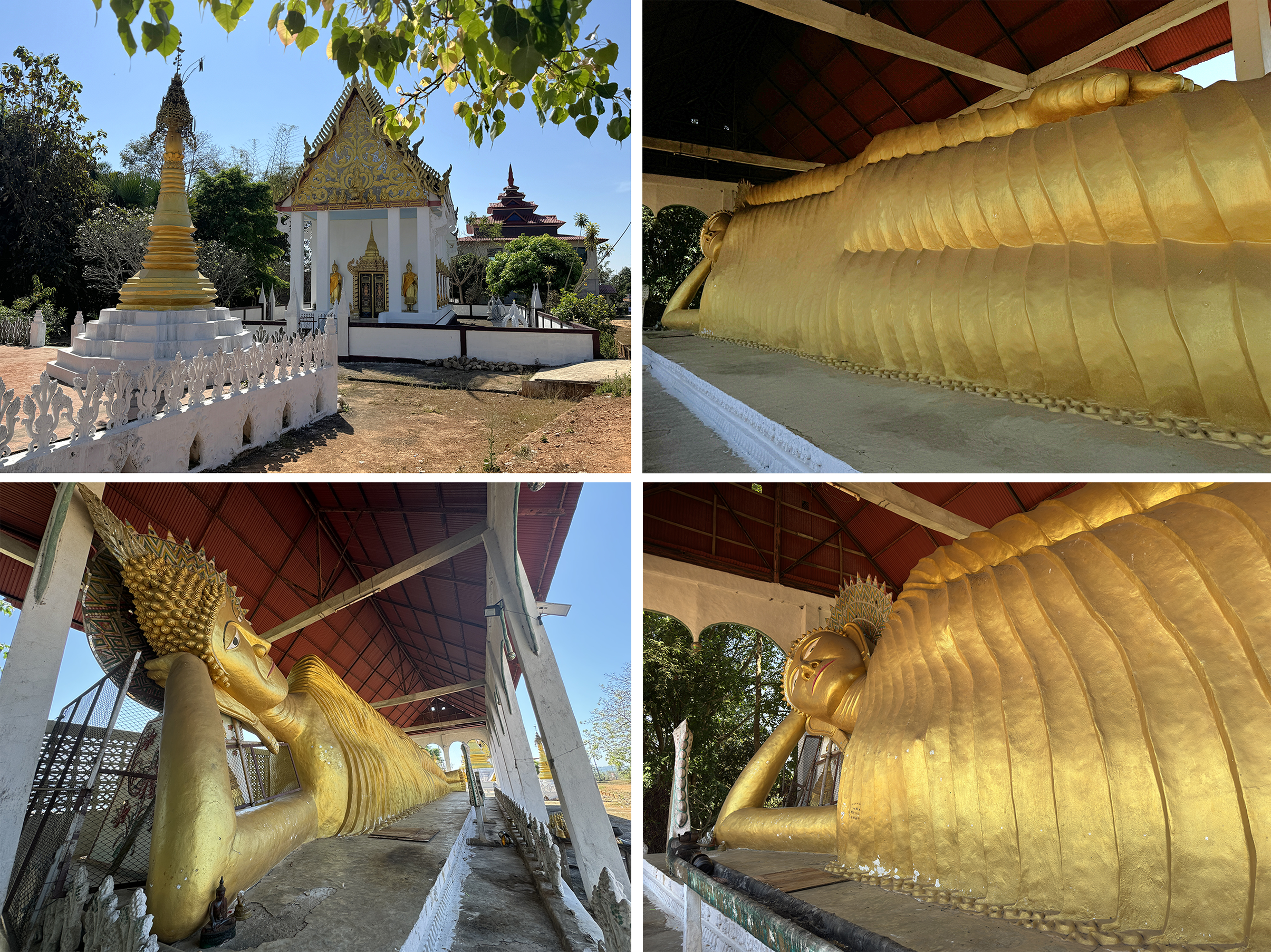 As we departed Sangkhla Buri we made a brief visit to the roadside Wat Somdet with its large reclining Buddha.