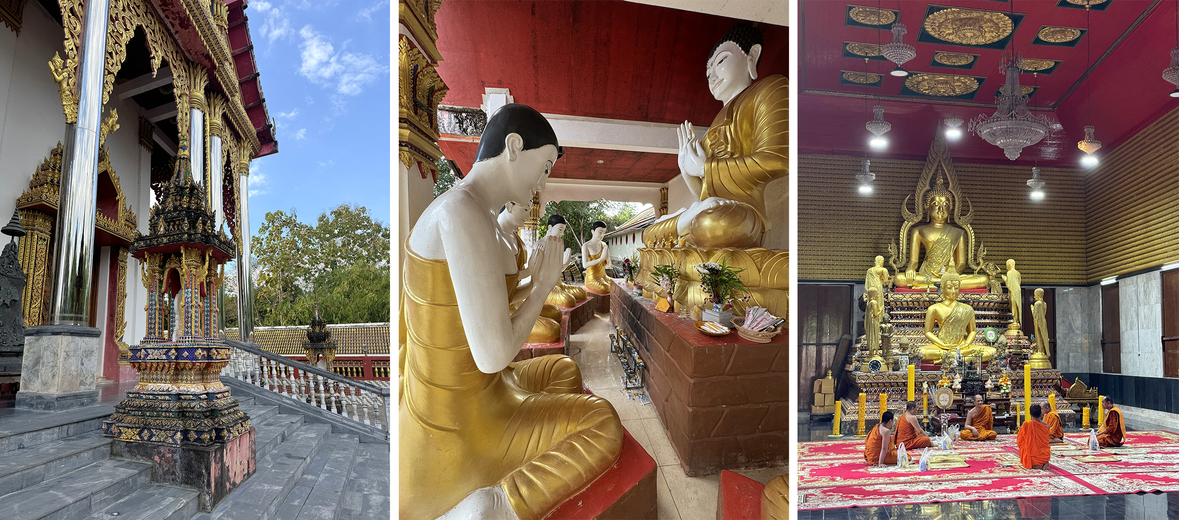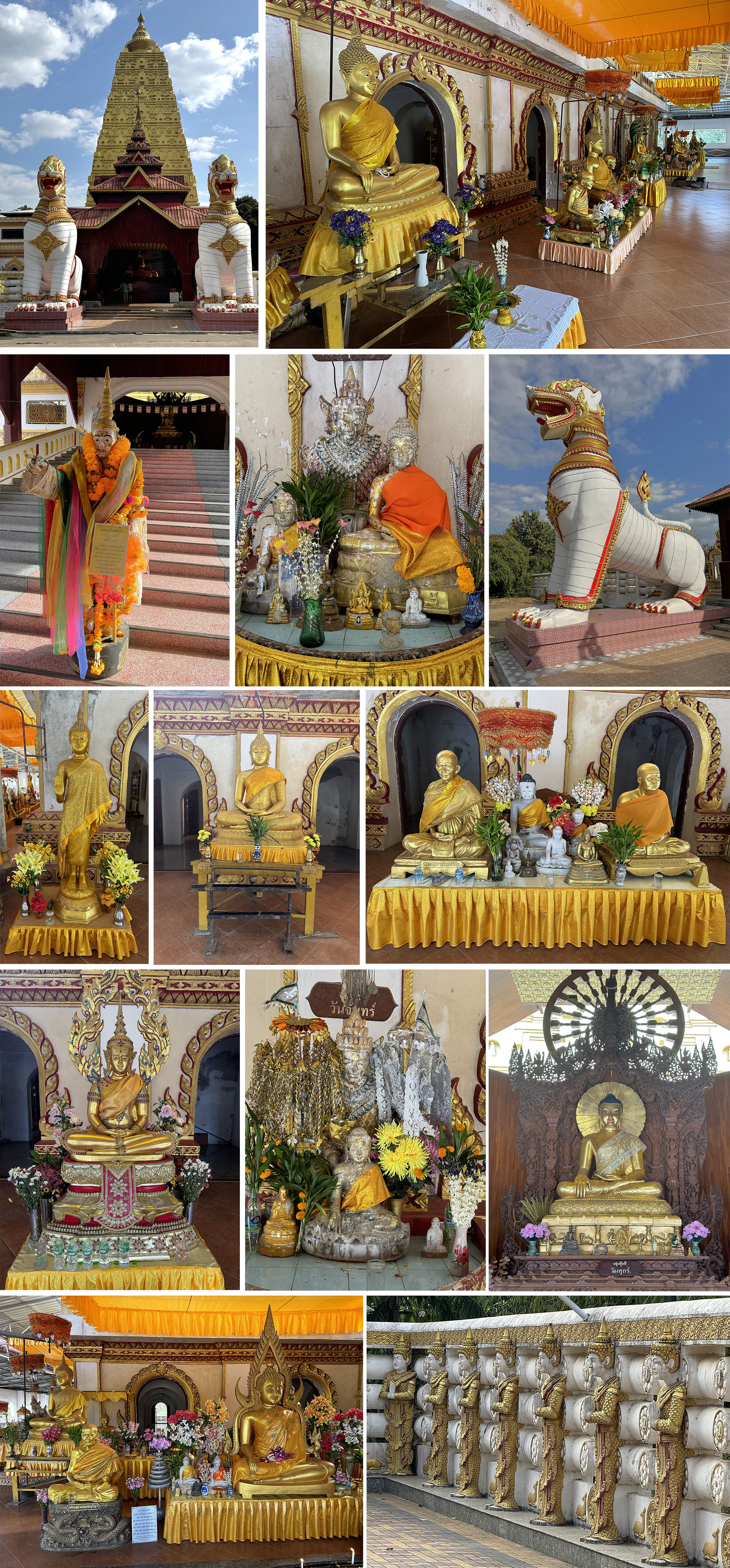 The golden tower of Buddhakaya Chedi which overlooks the lake and was built in the early 1980s. It is a replica of the Mahabodhi Stupa at Bodh Gaya in India. The reason this is important is because the Mahabodhi Stupa marks the spot of Buddha’s supposed original enlightenment. Like most Thai temples it is full of an eclectic mix of colourful ornamentation.
