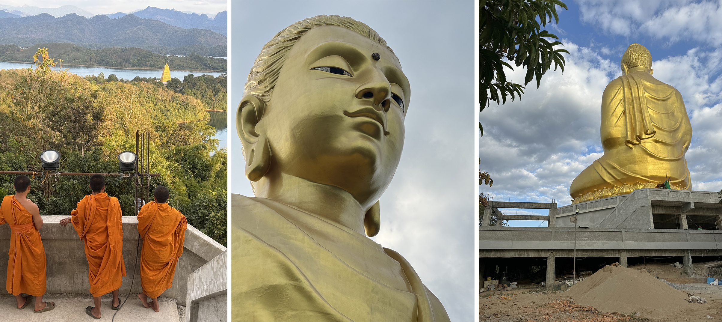 Big Buddhas are a characteristic sight all over Thailand and the one being built close to the Wat Wang Wiwekaram Temple is visible from all around Sangkhla Buri. It affords magnificent views of Vajiralongkorn Lake and the surrounding mountains.