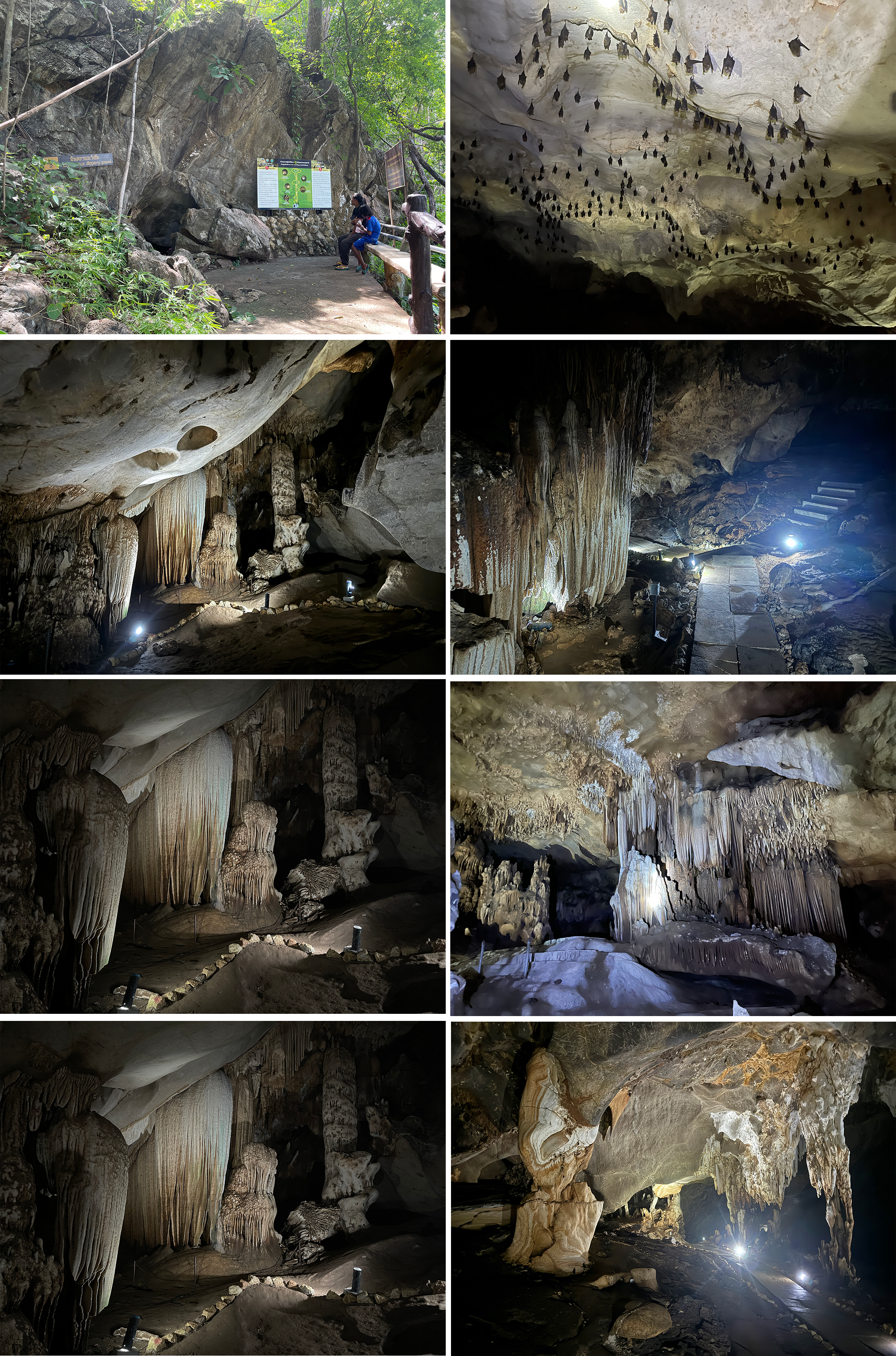 The Lawa Cave is no more than a 10 minute walk from the Resotel but is far from overrun with visitors as it is a good 20 minute drive from the road to Sangkhla Buri. I have now visited it twice and on both occasions only seen a handful of other visitors. It was discovered by a local hunter in 1950, and the government appointed him to manage the cave for the next 40 years! Although it is lit there are three or four headlamps for visitors to borrow. The cave consists of 5 main chambers and extends almost 500 metres from the entrance and is characterized by many beautiful rock formations, stalactites, stalagmites and plenty of bats!