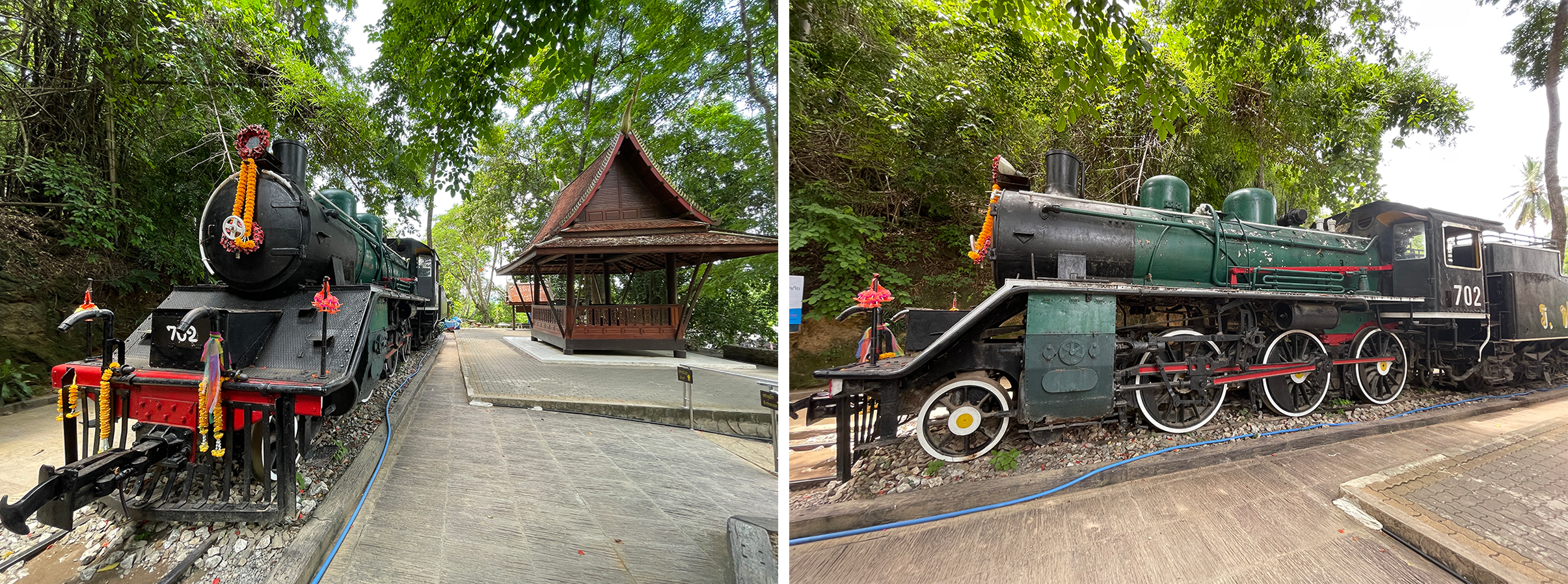 The Steam Engine was made by the Japanese and used on the Death Railway during World War Two and also for passenger trains between Kanchanaburi and Nam Tok until 1976. It is now a memorial honouring the suffering of thousands of forced labourers and Allied prisoners of War who died building the railway during World War 2.